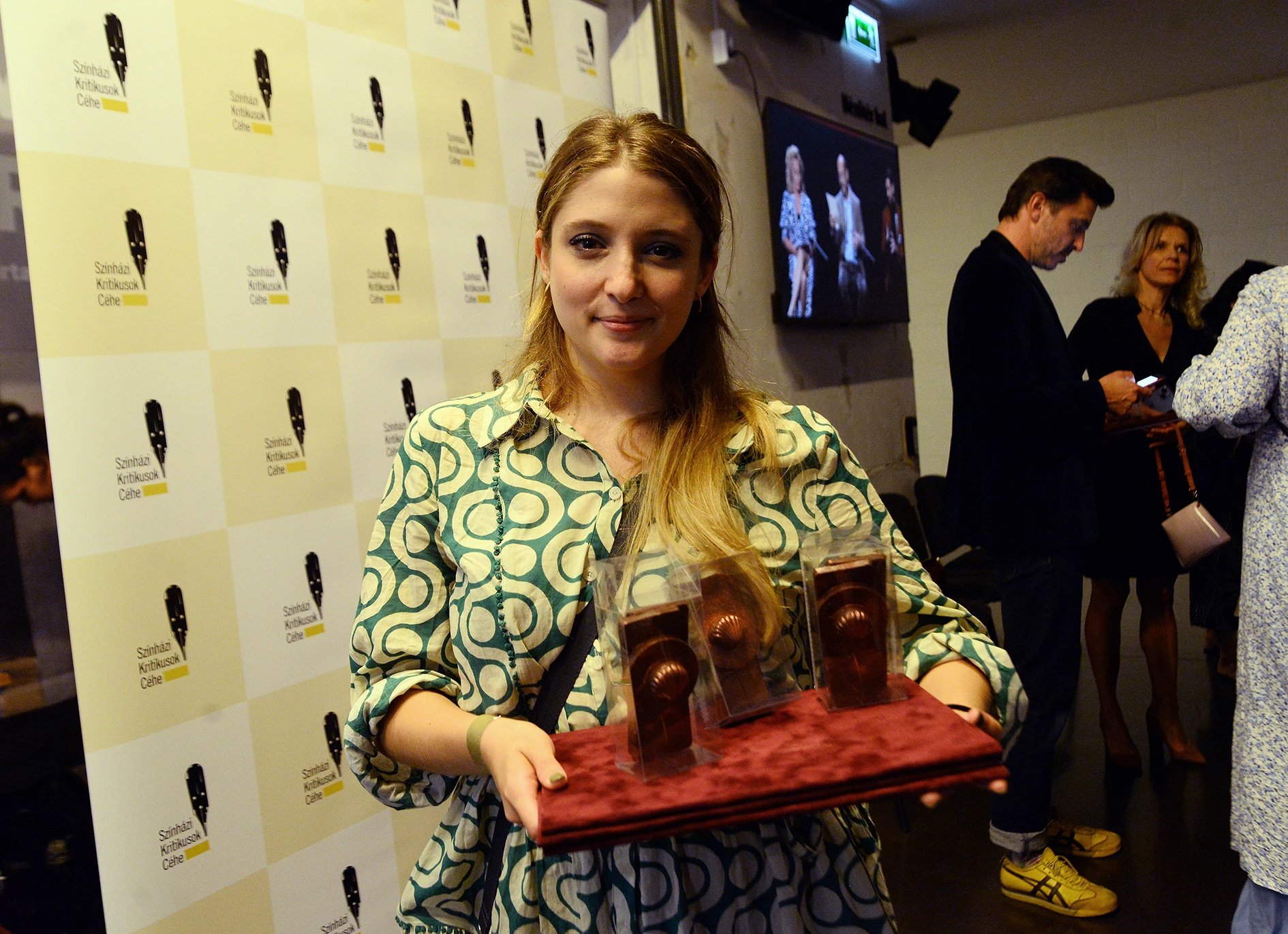 Az életműdíj egyébként egy fiatal iparművész által készített gyönyörű fémtárgy, ami hullámzó színpadi függönyre emlékeztet. Mellette a kategóriadíjak viszont minden évben csokoládéból készülnek. Ez már hagyomány a Színikritikusok díján, és fontos üzenete van: a színházi alkotások mulandóságát fejezi ki. Szerintem szép ötlet – milyen kár, hogy nem nekem jutott az eszembe.