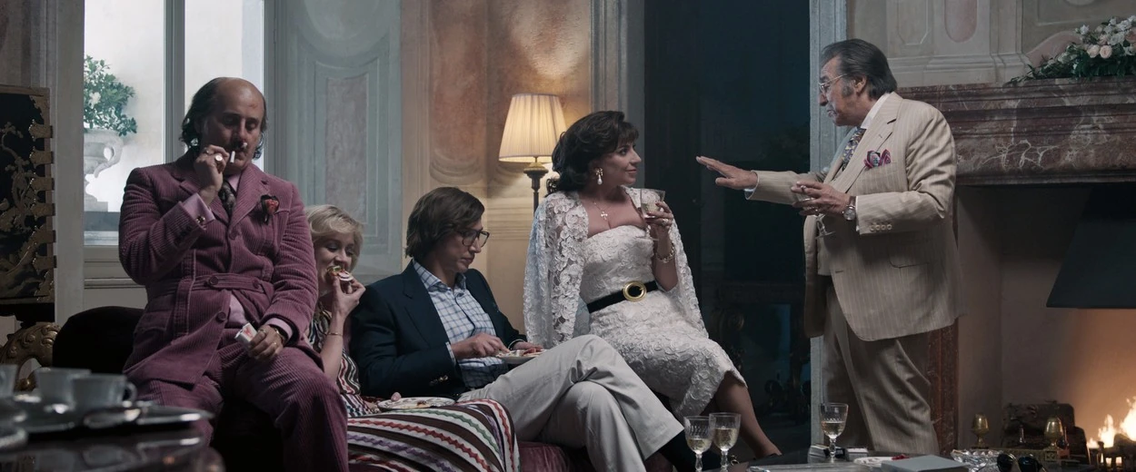 Hmmm. Pénz. Ennek az történetnek ez a vezérmotívuma, de ezt szükségtelen is mondanom. Reggiani csillogásában – akit a sajtó Lady Gucciként emlegetett -, állítólag 9000 fontot költött havonta csupán orchideákra. “A legtöbb ember nagyon izgatott lenne, ha eljátszhatna egy veszélyes, kockáztató, aranyásó gyilkost, aki csak káoszt teremt és szétcseszi az emberek életét,” mondta el Gaga.