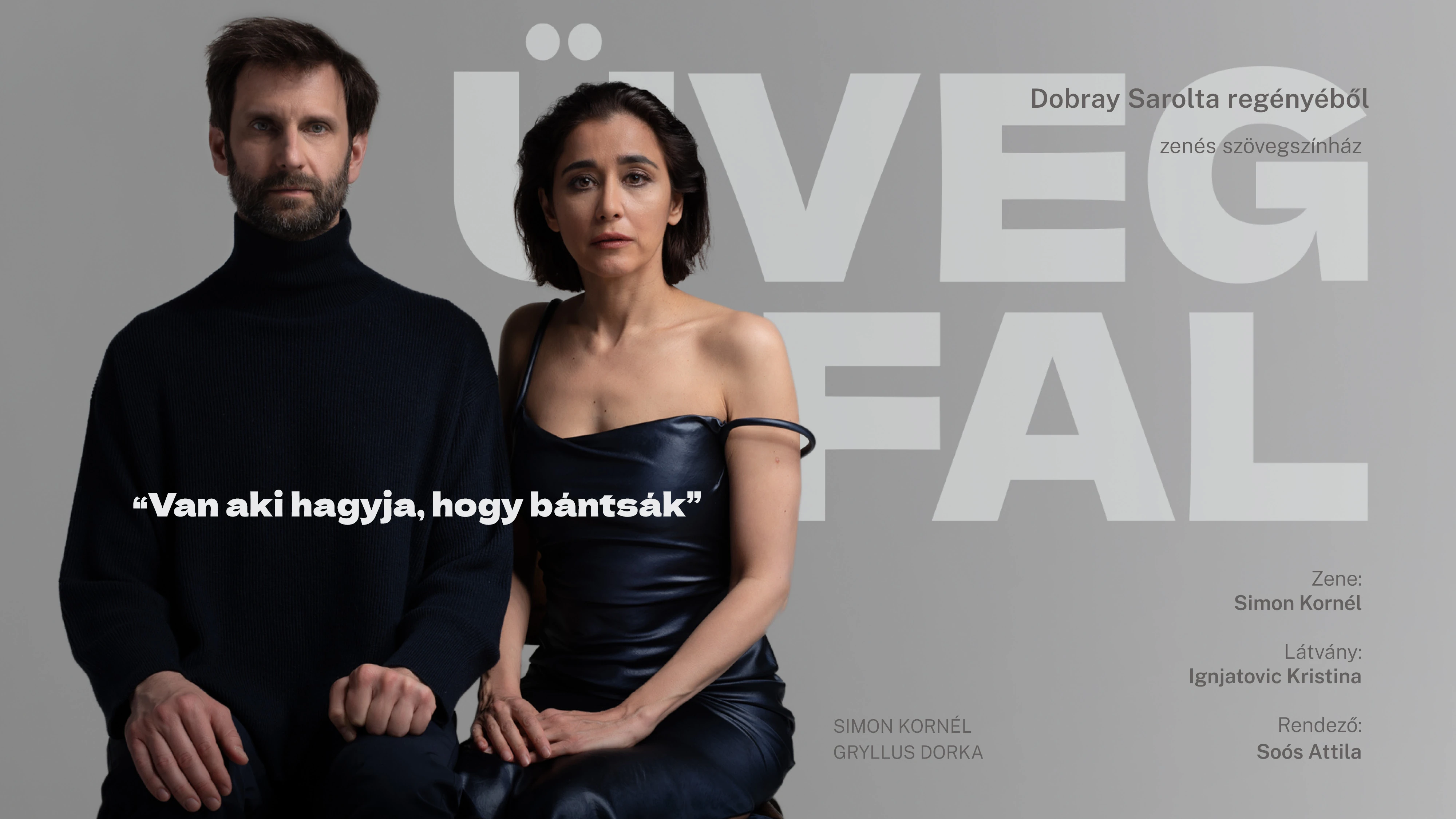 A műből Soós Attila rendezésében, Gryllus Dorka és Simon Kornél szereplésével formabontó előadás is készült, amely támogatójaként jelenik meg az AVON, világhírű szépségmárka. Az AVON a kapcsolati erőszak elleni küzdelem élharcosaként évek óta igyekszik felhívni emberek millióinak figyelmét a kapcsolati erőszak elleni küzdelem fontosságára. Elhivatottan küzd azért, hogy a fizikai-, szexuális- vagy szóbeli bántalmazást elszenvedőket támogassa és a lehető legtöbb emberhez eljuttathassa az üzenetet, hogy egy kapcsolatban a bántalmazás semmilyen formája nem elfogadható, és, hogy van segítség a bántalmazottak számára. A szintén Üvegfal címet viselő zenés szövegszínházi produkció szeptember és október folyamán tekinthető meg a Gólem Központban és a Lóvasúton.
