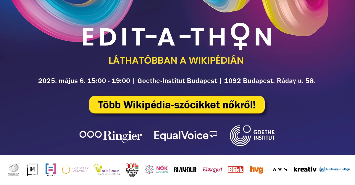 A nemzetközi mintát követve Magyarországon is elindul az első női fókuszú Wikipédia-szerkesztő maraton. A Ringier médiavállalat EqualVoice - Láthatóbban a Wikipédián néven szervezi meg Budapesten az Editathon eseményt, amelynek célja, hogy közösen javítsuk a nők reprezentációját az internet legnagyobb enciklopédiáján.
