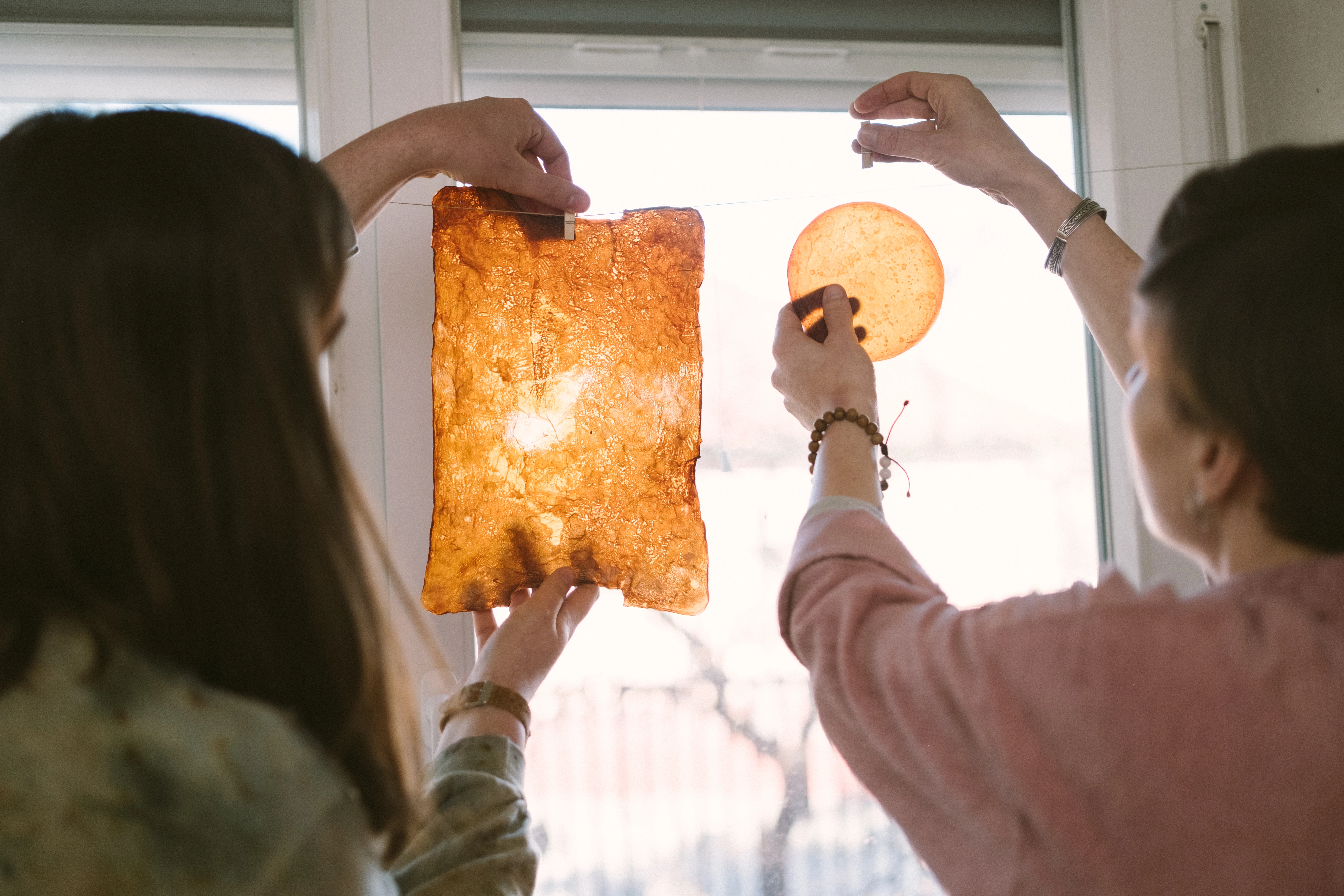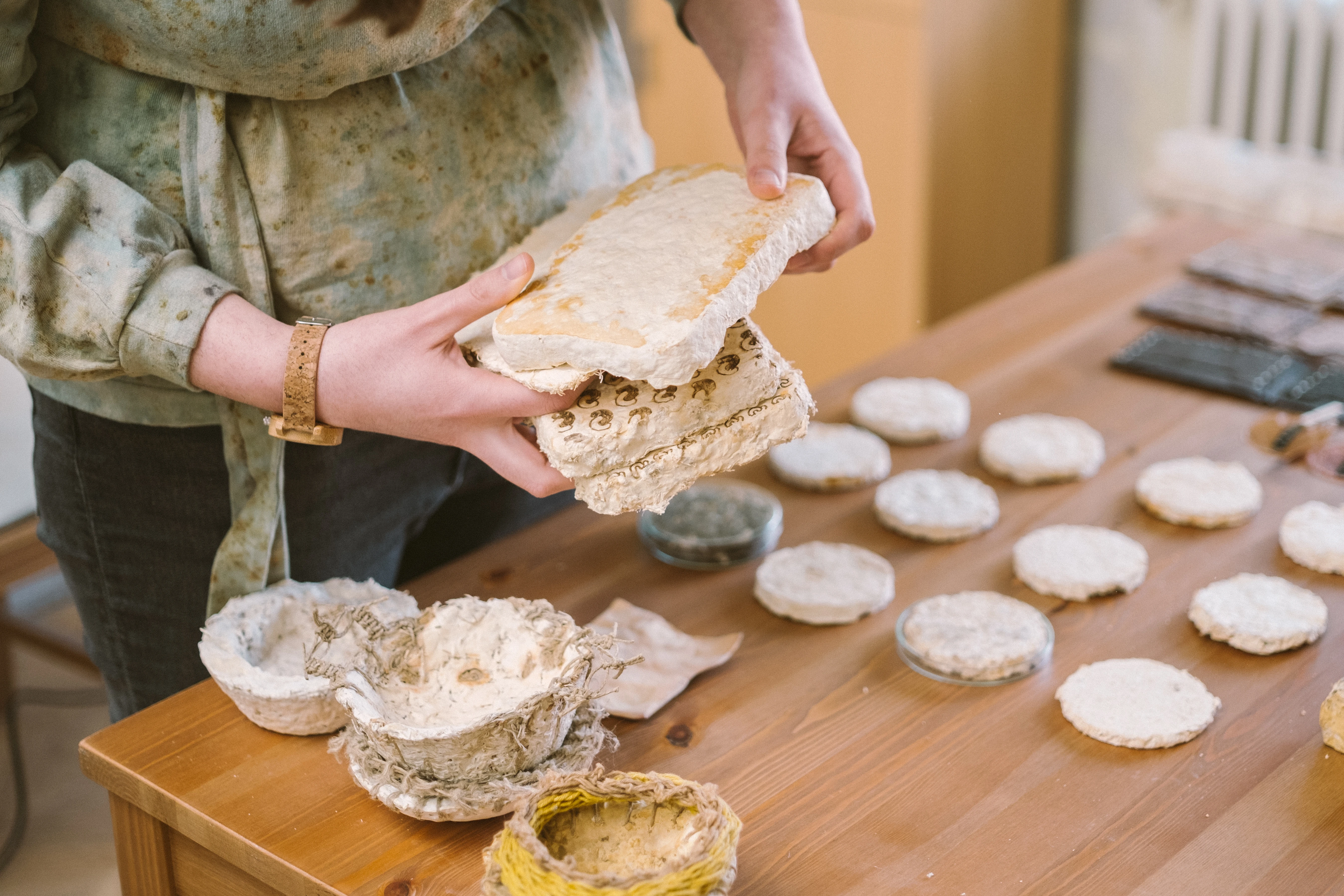 Szeretjük a munkásságunkra az organikus design kifejezést használni, amibe bele tartoznak a klasszikus, ámde fenntartható textilfestési technikák, amelyeket mára leginkább ecodye-ként, ecoprintként szokás emlegetni, illetve a növeszthető anyagok tárgyköre, amin belül a kombucha és a micélium került leginkább tevékenységünk homlokterébe. Emellett igyekszünk képezni magunkat a biopolimerek területén is.