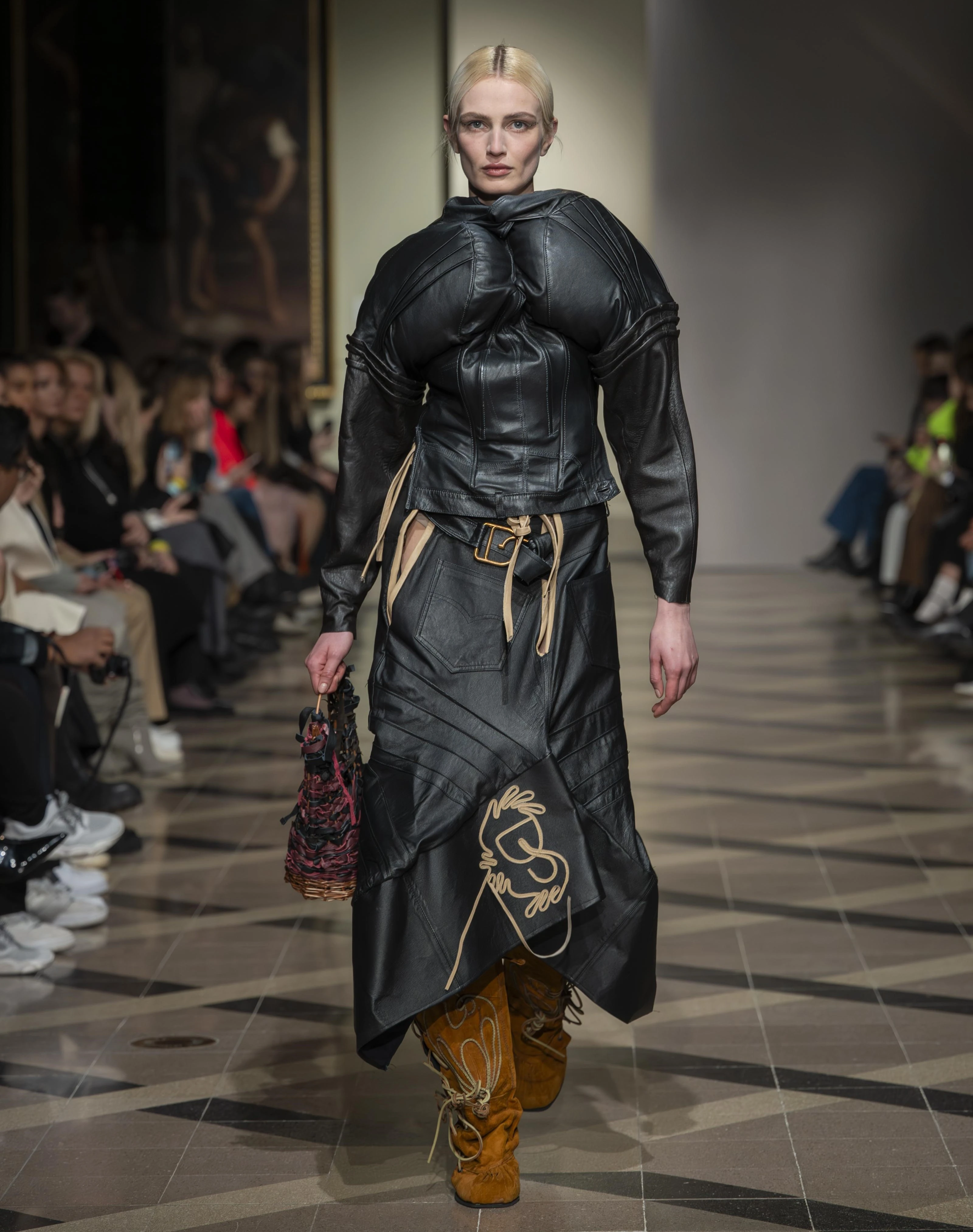 Igen, az egyetememen, a Central Saint Martinson nagy hangsúly van a fenntarthatóságon. Az első néhány évben 1-3 hónapos projektjeink voltak, és mindegyikbe belecsempészték valahogy. A legelső projekt a White Show volt. Egy autóüléseket forgalmazó cég a fehér suede (bőr) textiljeit az egyetemnek adományozta, és lényegében az volt a kérdés, hogy mit tudsz kihozni az adott anyagból.