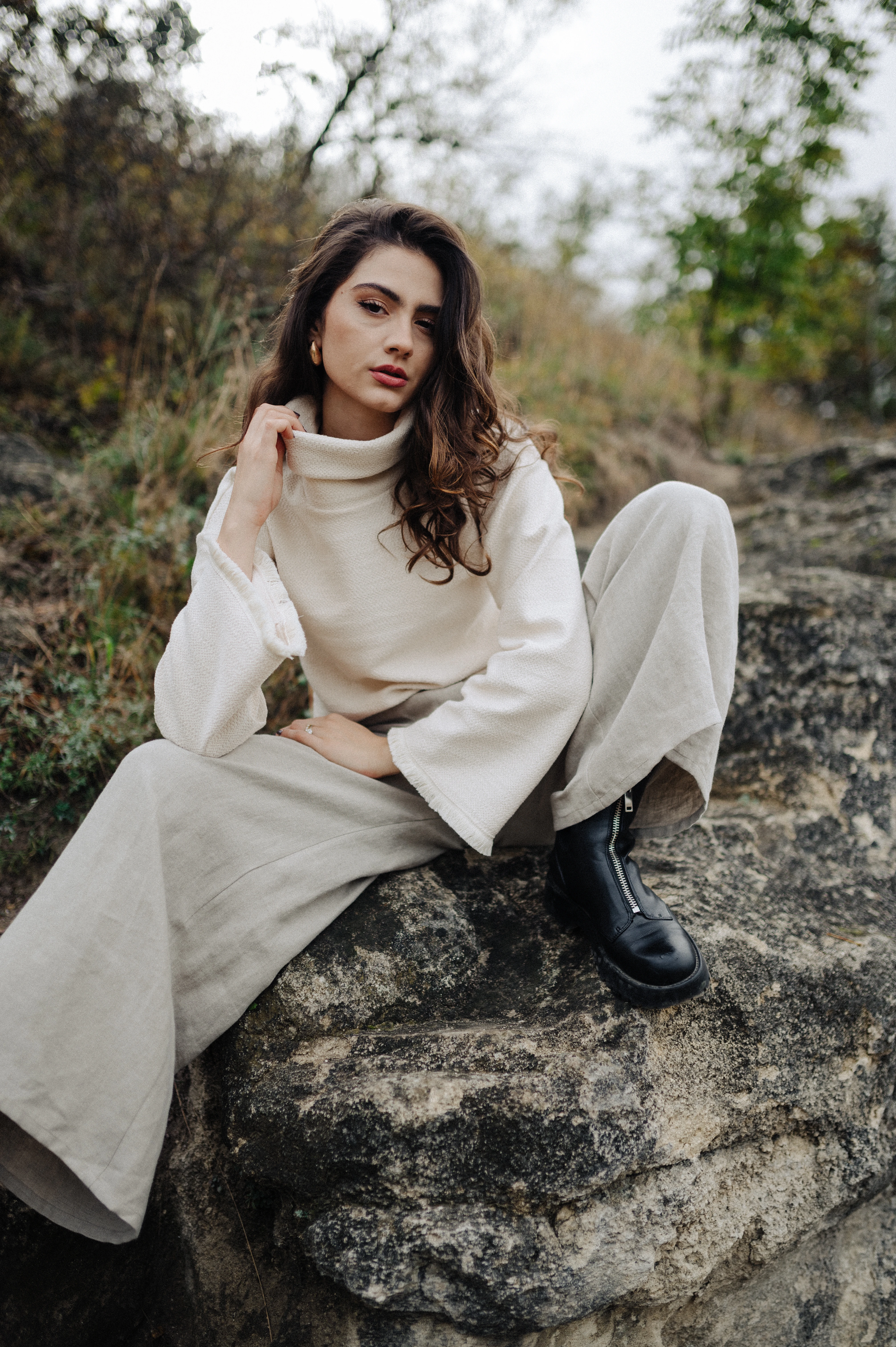 A Czucz Studio darabjaihoz kizárólag természetes anyagokat használok, mert hiszek abban, hogy ezek nemcsak fenntarthatóbbak, de sokkal kényelmesebbek és egészségesebbek is a viselőjük számára. Az első kollekciókhoz a lent választottam, mert ez egy száz százalékban természetes, fenntartható alapanyag. A len termesztéséhez jóval kevesebb vízre van szükség, mint például a pamuthoz, és rendkívül ellenálló növény, így alig igényel növényvédő szereket.