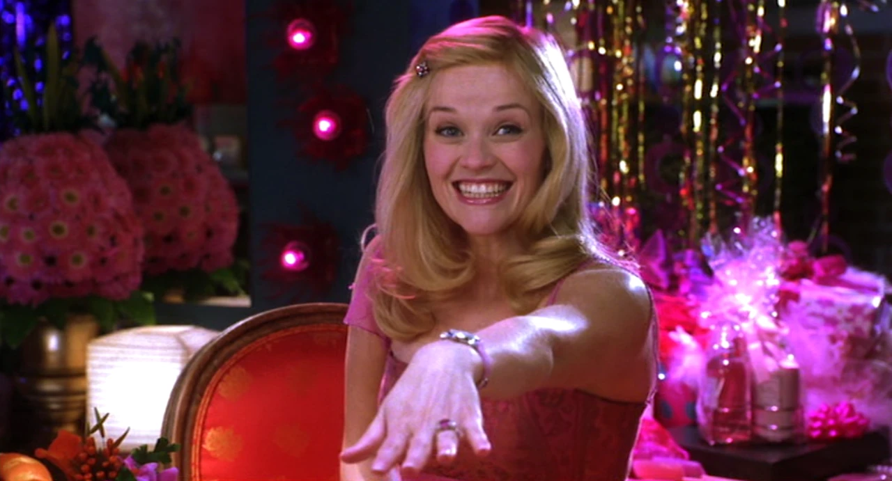 Ugyan az első filmben Vivian Kensington csontos, „Szörnyella de Frász” ujján landolt a nagymama hatkarátos Harry Winston gyémántgyűrűje (egy gigantikus cseppformájú kő két szomszédos trillion csiszolattal, amiért mi is elmorzsolnánk egy pár könnycseppet). Minden jó, ha a vége jó, ugyanis minden idők legbájosabb ügyvédnőjét, Elle Woods-ot az álomférfi, Emett Richmond mellett az - ugyancsak Harry Winston márkájú - álomgyűrű is megillette a második epizódban.