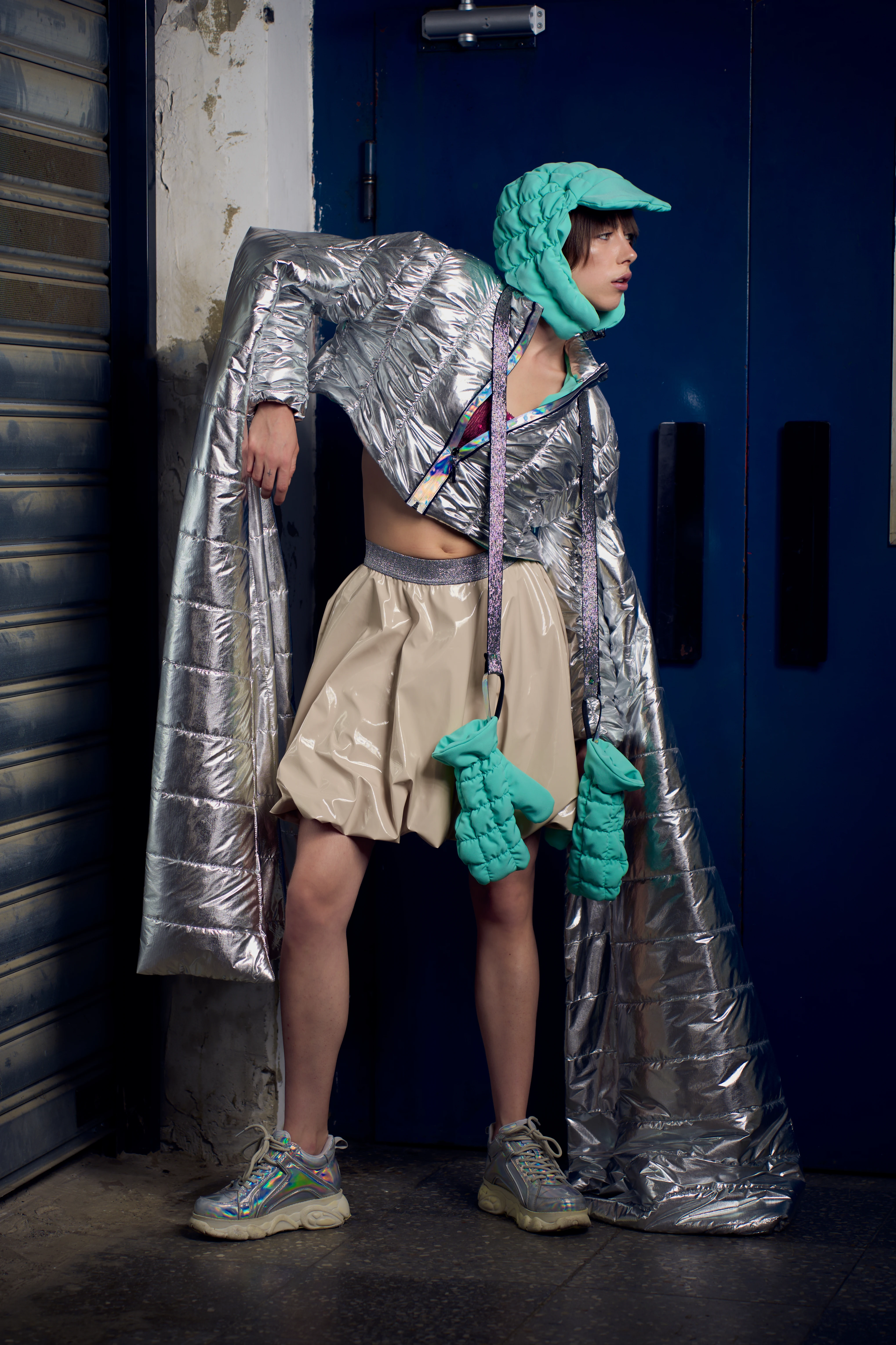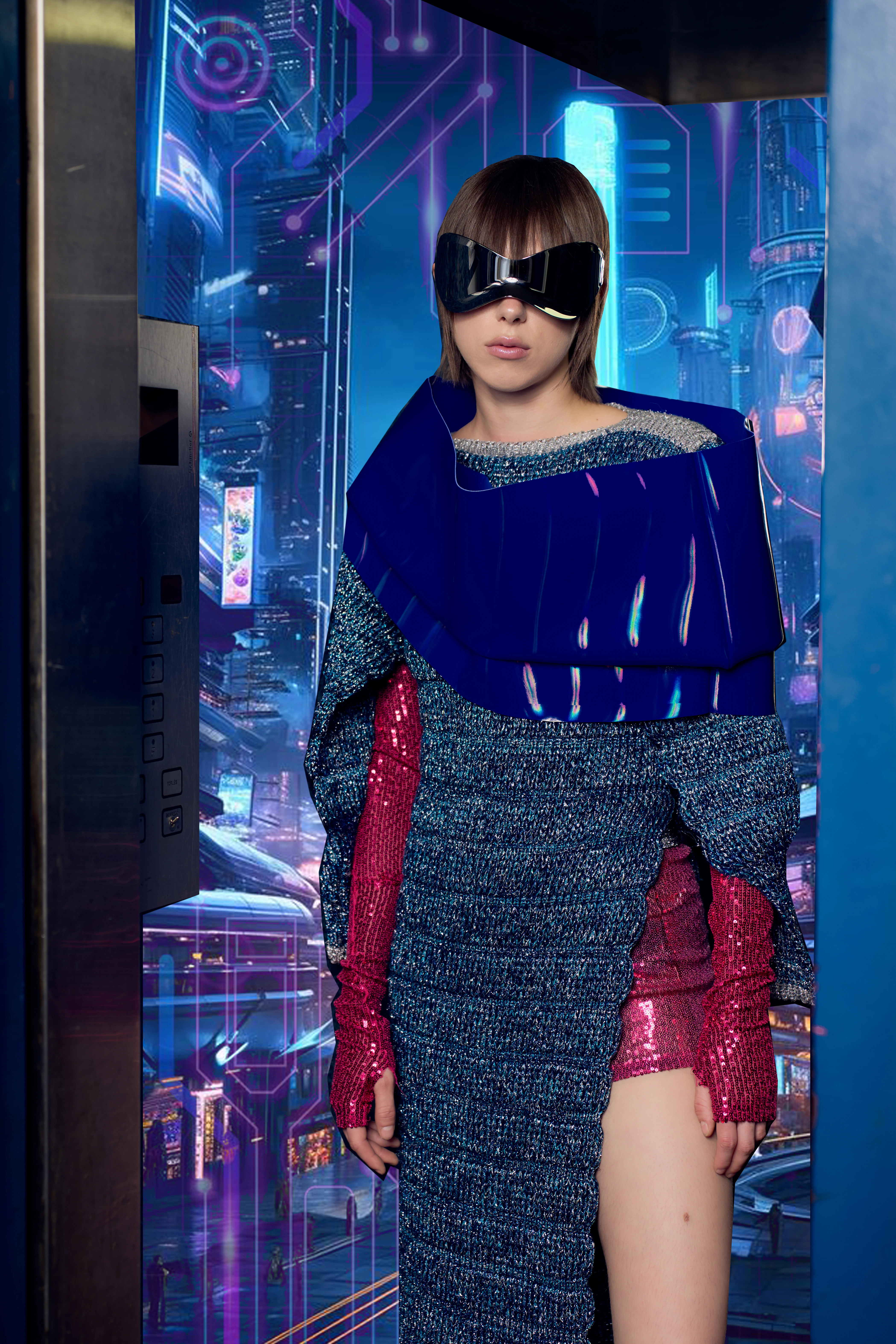 Mesterdiplomám kutatási témája az ember és a technológia kapcsolata. A kutatás által inspirált kollekcióm tartalmaz virtuálisan felvehető kiegészítőket, amelyekkel a fizikai és a digitális létünk összefonódását fejezem ki. Jelenleg főként a kutatási része érdekel a témának, főleg szociológiai szempontból. Észre sem vesszük, hogy a technológia milyen nagy mértékben hat a kommunikációnkra és a szocializálódásunkra.