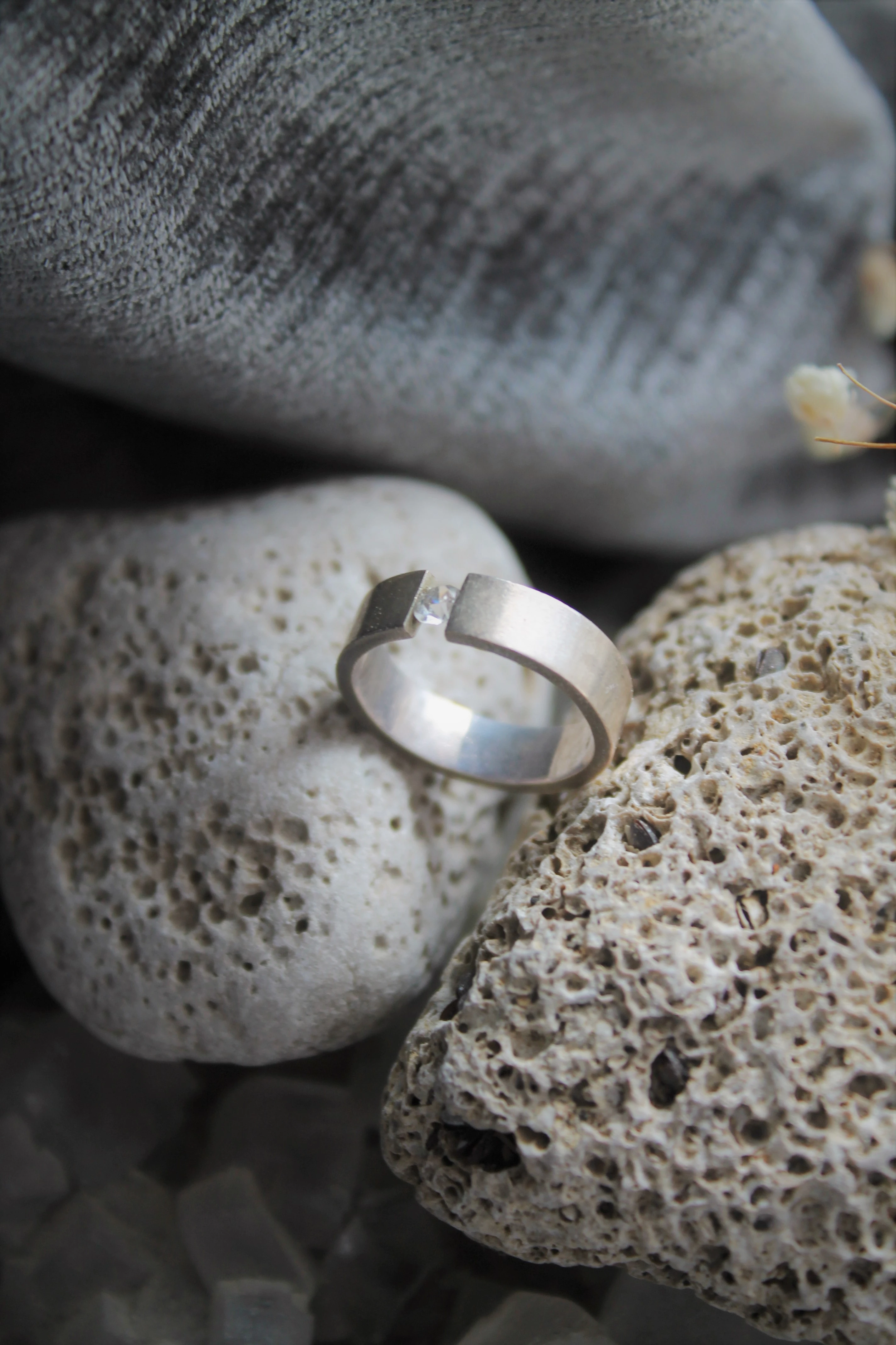 A tökéletes gyűrűméret meghatározása ennél egy jóval trükkösebb side-quest mind a megrendelőnek, mind az ötvösnek, ezért a gyűrűsín megtervezésénél mindig figyelembe vesszük az esetleges tágítás és szűkítés procedúráját. Helyet hagyunk neki, ügyelünk rá, hogy inkább nagyobb legyen, mint kisebb (egy ötvös aranyszabálya), valamint elkerüljük a végig díszített, kőberakásos és vésett gyűrűsíneket.