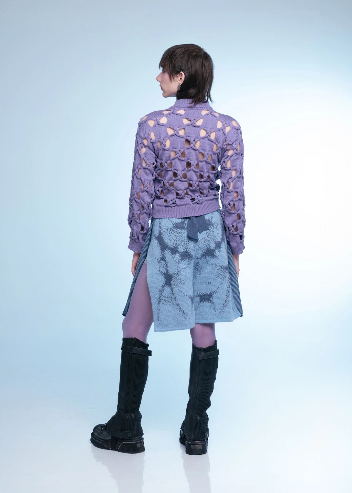A kollekció Y2K-futurisztikus hangulatát a kísérletező anyaghasználat és a kézi-gépi technikák kombinálása adja. Az egyik kulcsdarab, a Swirl pulóver egy ötvenes évekbeli horgolt terítő mintájából indul, amely értelmezéséhez Eszter saját Instagram-közösségétől kért segítséget. Így a projekt a digitális kor új kézművességének mintapéldája lett, ahol a hálózatok nemcsak technológiaiak, hanem emberiek is.