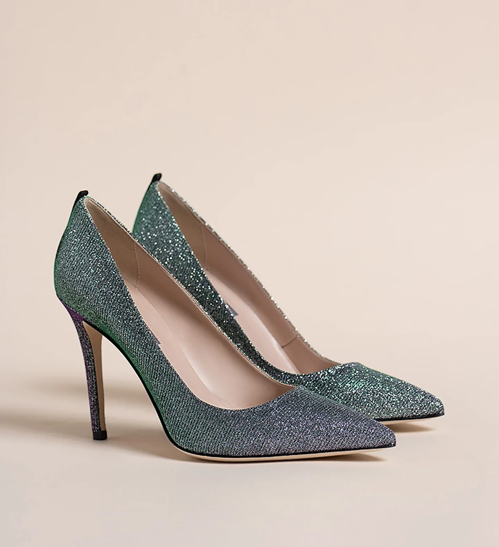 Ami szintén 2024-ben látott napvilágot, melyben a colorblock metálsárga-lila-pink tűsarkú mellett alacsonyabb slingback fazonok, tradicionális balett topánok és extravagáns, irizáló, kristályozott masnival megspékelt lábbelikben gyönyörködhetünk.
