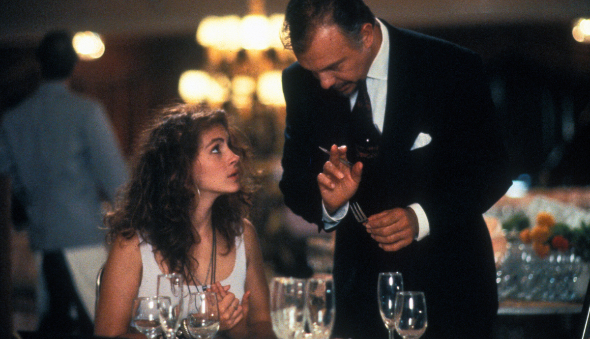 Beugrik a Pretty Women című filmből az a rész, amikor Vivian az étkezési etikettet gyakorolja egy pazar étteremben. Ül a gyönyörű teríték előtt, és tanácstalanul felkiállt a sok villa láttán: „hát kicsit nagyobb vagy kisebb, az nem tök mindegy? Az fix, hogy ezeket összekeverem!” Az etikett szerint nem mindegy, mit mivel eszünk és mit miből iszunk.