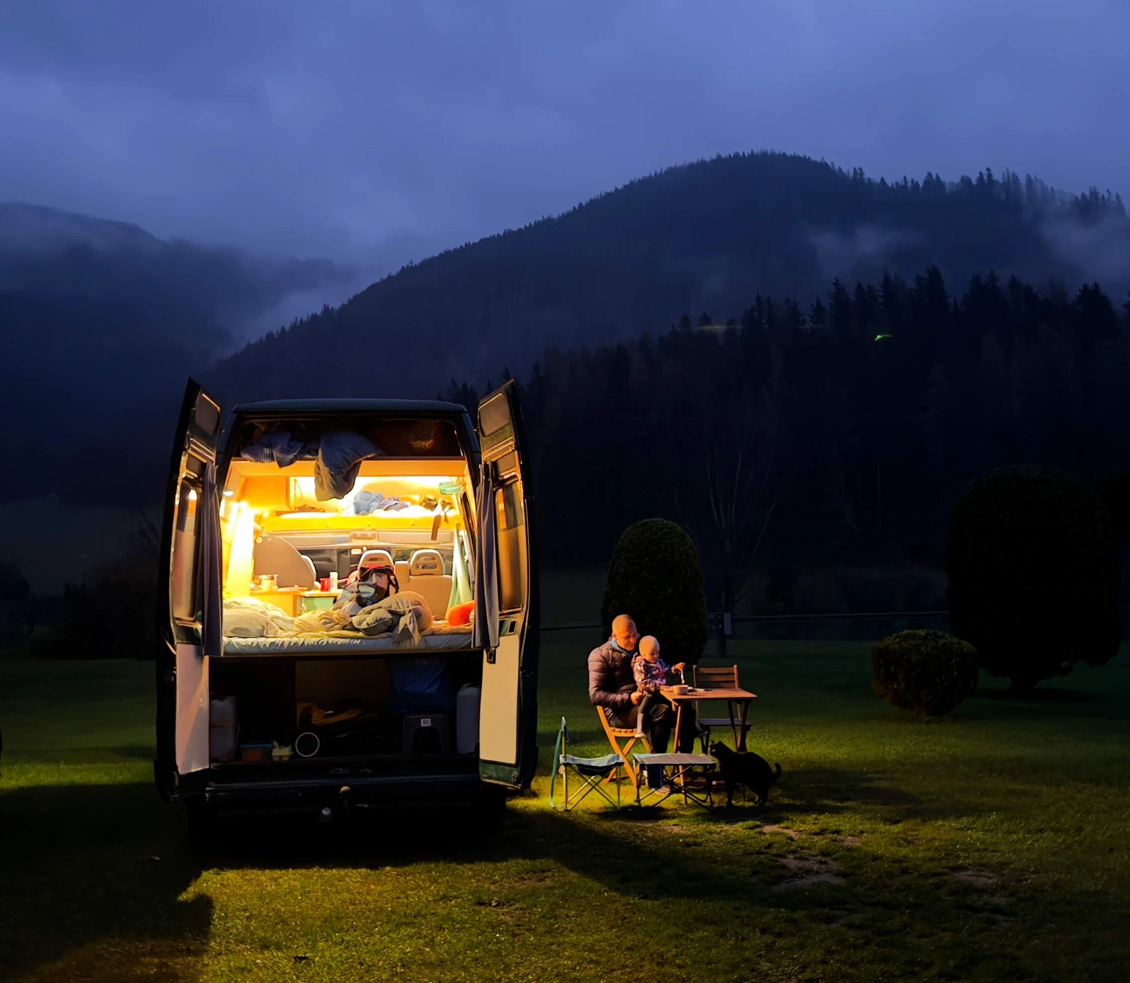 Az első közös lakóautózásunk elképesztő élmény volt. Nagyon tetszett Natinak, hogy az ágy a konyha helyén van, és az ajtóból kilépve egyből az erdőben találta magát. Azóta többször is emlegette már, és várja a következőt. Ezt a programot egyébként mindenkinek ajánlom, fantasztikus érzés, hogy kötetlenül, szabadon lehet menni, egy esti csillagnézés pedig valóban örökre szóló élmény.