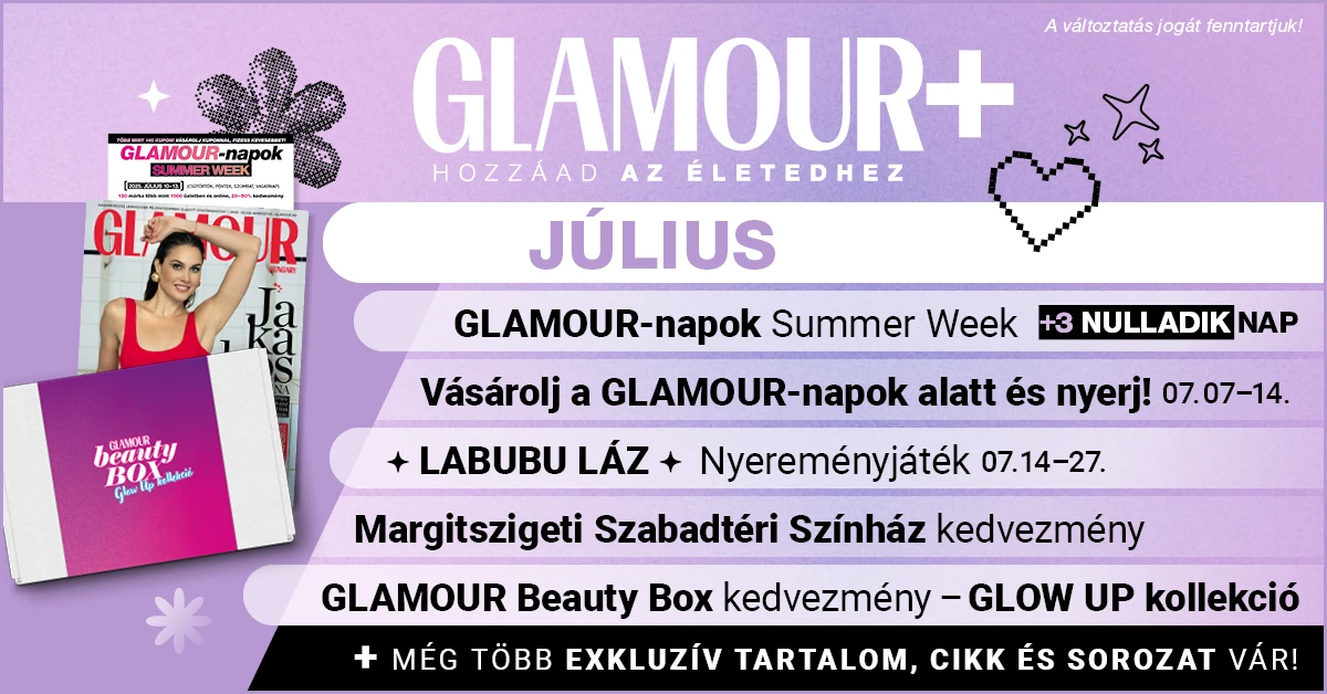 2025. július 1. - 31.🌞 Itt a július – a nyár legszebb, legélménydúsabb időszaka! A GLAMOUR Plusz közösség tagjaként most is exkluzív digitális tartalmak, különleges ajánlatok és önismereti inspirációk várnak rád. Frissítsd fel a stílusod, kapcsolódj magadhoz, és hozd ki a legtöbbet ebből a hónapból! 🌺✨