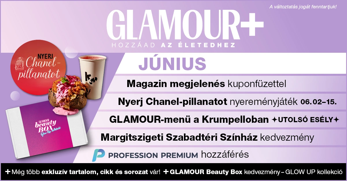 2025. június 1. - 30.🌞 Új hónap, új energiák, új élmények! Csatlakozz hozzánk, mert a GLAMOUR+ közösség tagjaként exkluzív tartalmak, különleges lehetőségek és nyárindító programok várnak rád – egész hónapban! Frissítsd fel a stílusod, mélyedj el az önismeretben, és fedezd fel, milyen izgalmakat tartogat számodra a GLAMOUR Plusz világa júniusban is! 🌴✨