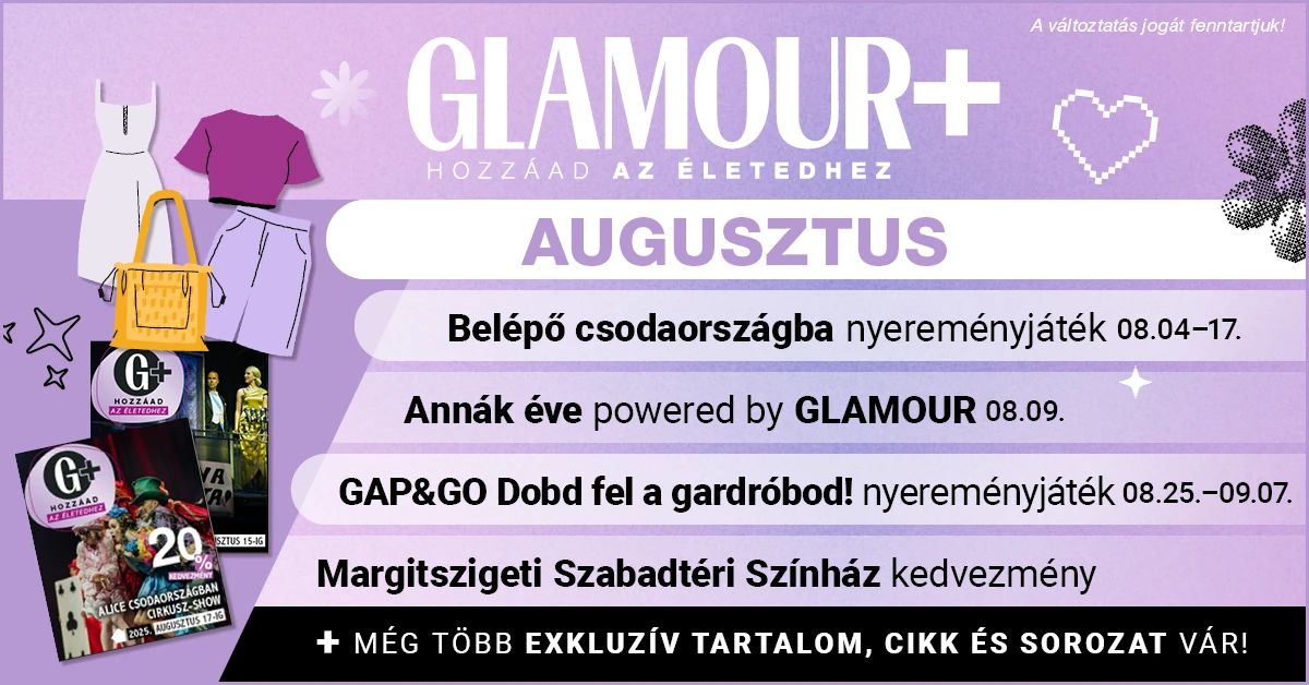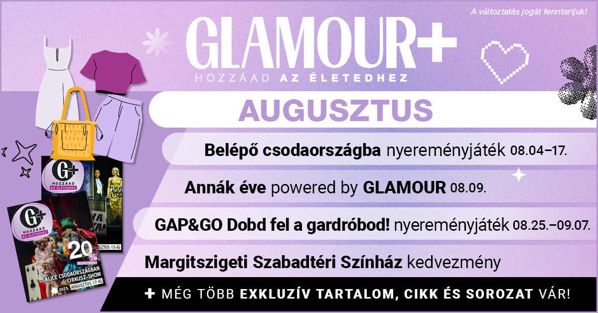 2025. augusztus 1. - 31.Bár a nyár utolsó hónapjába léptünk, augusztus még rengeteg élményt tartogat. Exkluzív tartalmak, inspiráló találkozások és mesébe illő programok várnak. Fizess elő most, és élvezd ki a nyár minden pillanatát a GLAMOUR+ közösség tagjaként! 💖