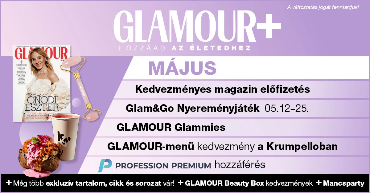 Továbbá előfizetőként eléred a GLAMOUR magazin aktuális és korábbi digitális kiadásait, megkapod az idén ötször megrendezésre kerülő GLAMOUR-napok kuponokat, valamint nyereményjátékokkal és további izgalmas eseményekkel várunk. Mindemellett egyedi kedvezményt szerezhetsz a GLAMOUR Beauty Boxokhoz.
