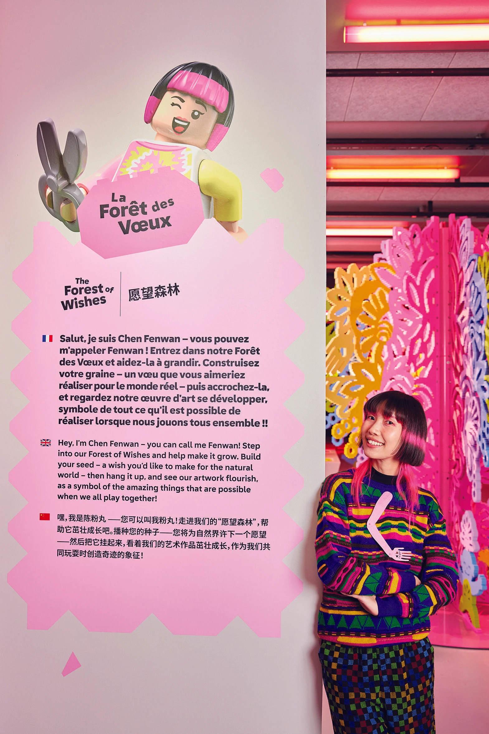 Ez persze sokkal bonyolultabbá teszi az életet, de az attól szép, hogy színes!” – mondja félmosollyal az arcán. És ha már színek: akárcsak Aurélia, úgy Sarah is kiemeli kínai alkotótársuk, Chen Fenwan világát, amely szintúgy a Lego Superpower Studios kiállításának részét képezte. Fenwan The Forbidden Forest of Wishes (– a kívánságok elvarázsolt erdeje) elnevezésű, embernagyságú, szimmetrikus fáit 1,8 millió legókockából hozta létre. A fák nemcsak önálló szobrokként állják meg a helyüket, hanem közösségi élményként is, hiszen a látogatók egy-egy cetlire felírt kívánságot is akaszthattak a fák köré, együtt létrehozva a kívánságok elvarázsolt erdejét.