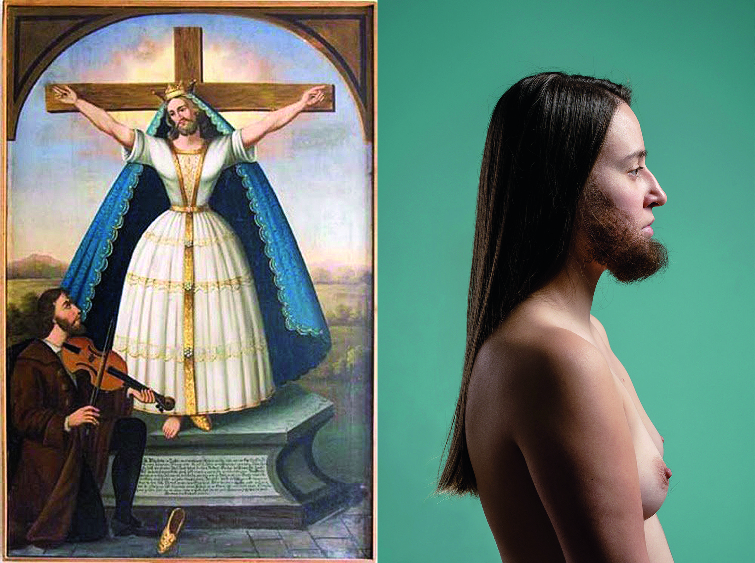 Bemutatja többek között Szent Wilgefortist (bátor szűz), egy portugál király lányát, akit Istennek tett szüzességi fogadalma ellenére az apja mindenáron férjhez akart adni. A XIV. századi legenda szerint Wilgefortis tiltakozásképp koplalni kezdett, majd rövidesen szakálla nőtt, ami megóvta őt a kényszerházasságtól. Az apja ezen annyira bedühödött, hogy keresztre feszít tette a lányát, a kínhalált halt szakállas Wilgefortis pedig rövidesen az erőszakot elszenvedett nők és a férjüktől szabadulni akaró asszonyok védőszentje lett.