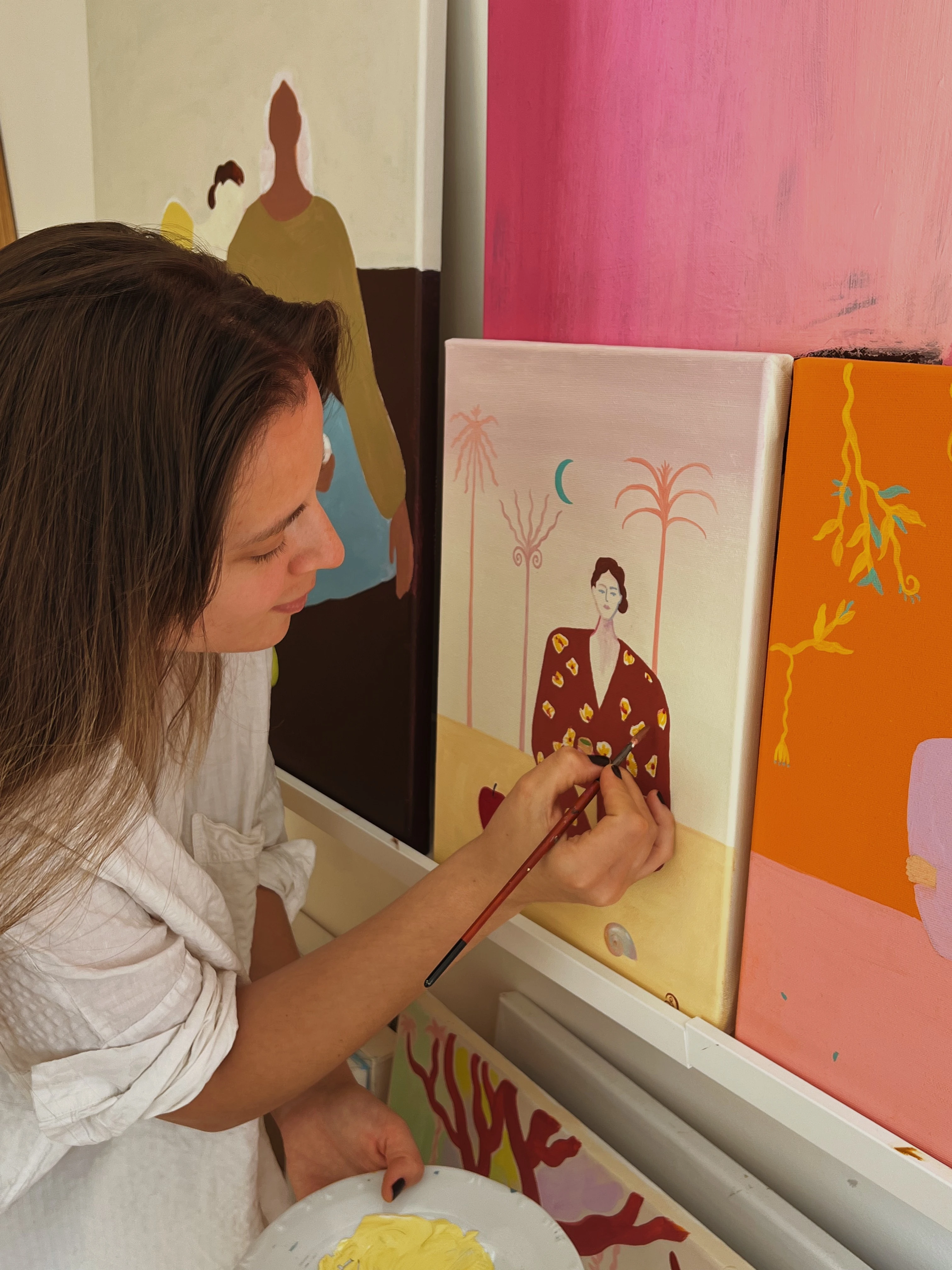 Sandra Poliakov emblematikus, színes, nőket ábrázoló festményei a világ számos pontján sikert arattak. A Budapesten élő nemzetközi művész mesél nekünk arról, milyen érzés volt három különböző kultúrában felnőni, hogyan hatott ez a művészetére, miért volt számára transzformatív élmény lányának születése, és arról is, mit tanít gyermekének az alkotásról.