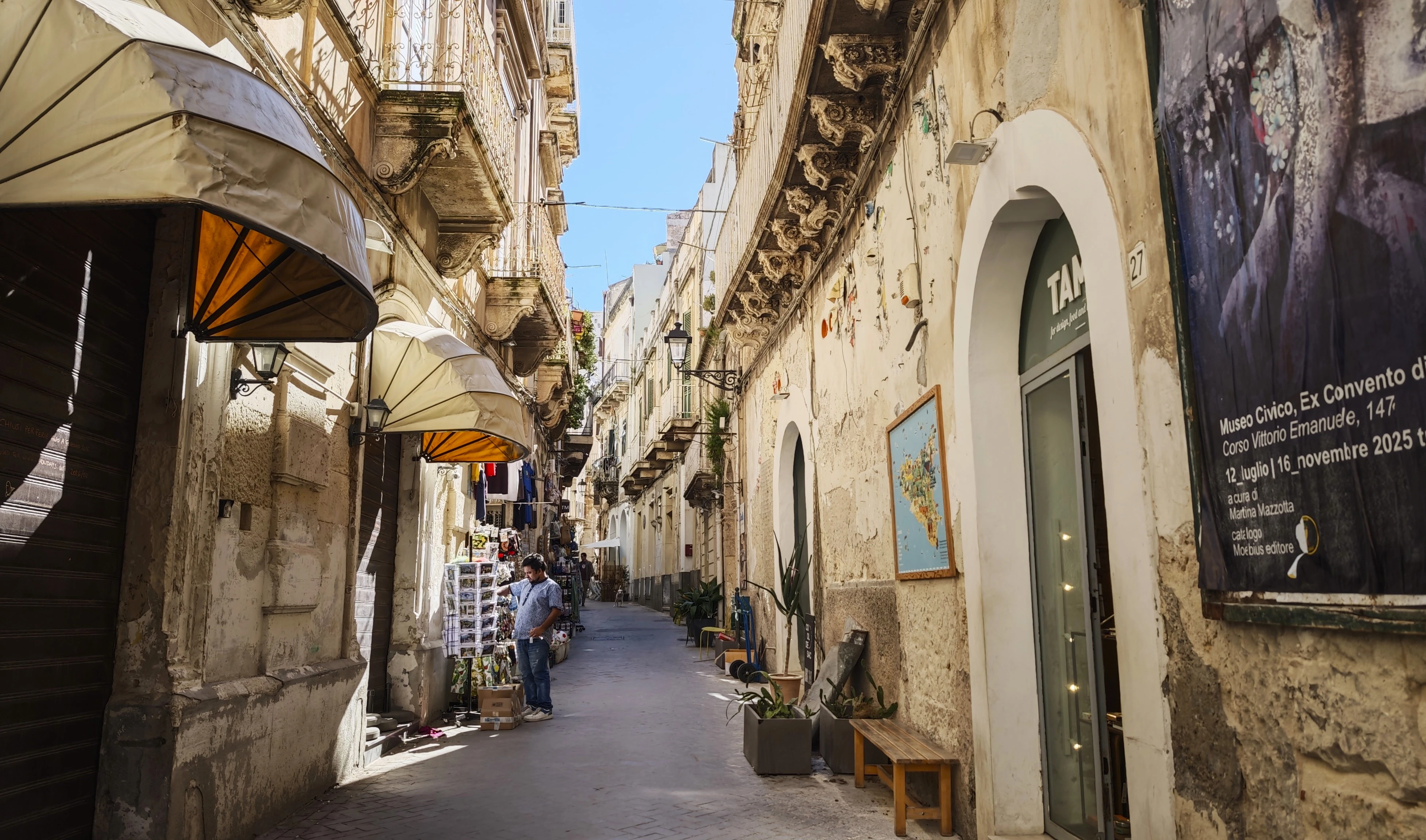 A Duomo tér monumentális, mégsem távolságtartó épületeinek egy része épp felújítás alatt volt ottjártamkor, a környék mégis különleges díszletet adott a helyi specialitásból (Ravioli Alla Norma) álló ebédemnek. A környező szűk utcákon barangolva eljutottam a legendás Arethusa-forráshoz is, ahol az Európában igen ritka papirusz növény is megterem egy édesvizű kútban, majd a Maniace-erődhöz is elsétáltam. Ezután a homokos tengerparton sütkéreztem a balzsamos, 20-25 fokos melegben.