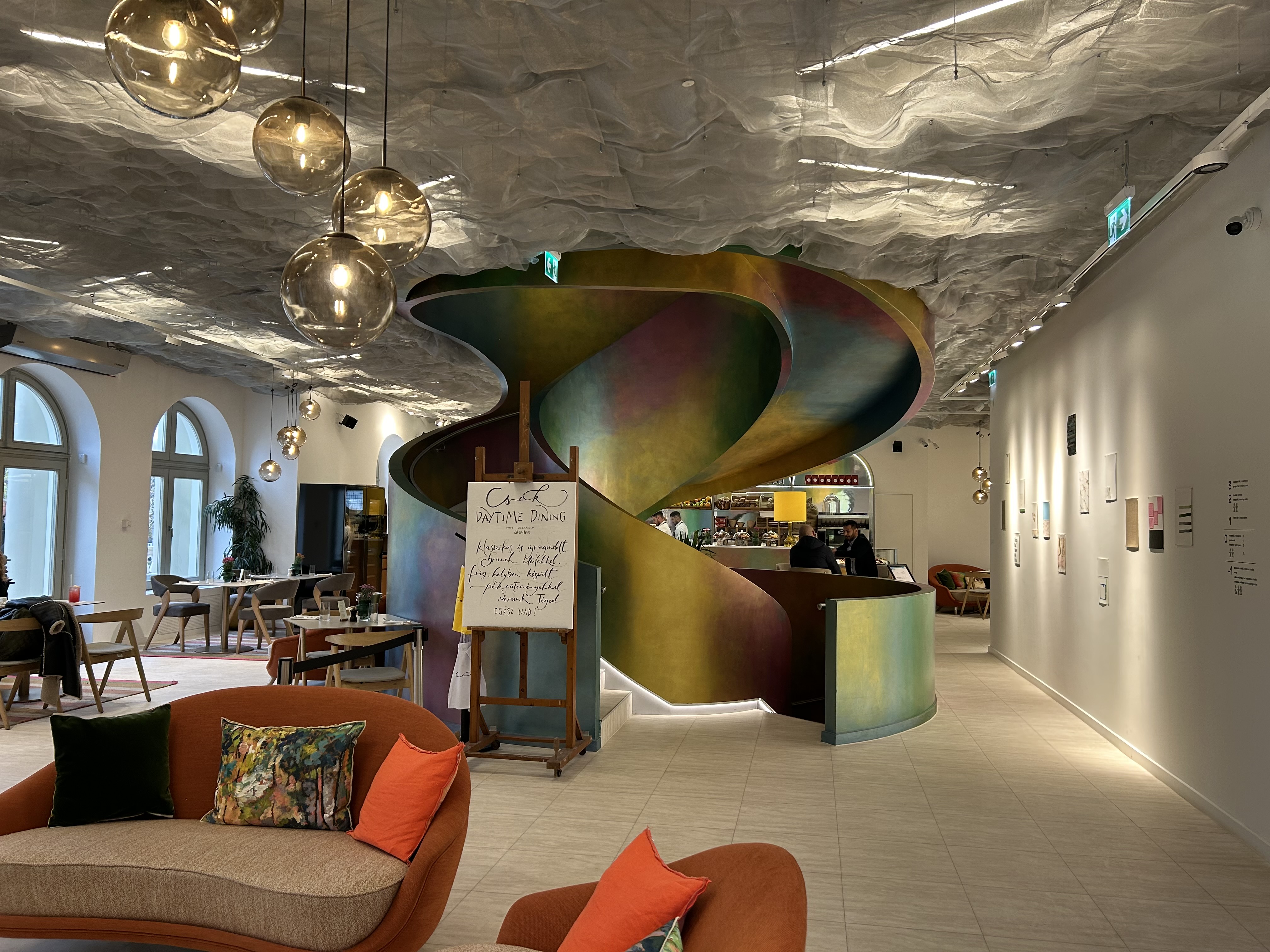 A Csók Bisztró nemcsak kulináris élményekkel, hanem vizuális különlegességekkel is várja vendégeit. Az étterem központi eleme az ikonikus szivárvány lépcső, amely a színek teljes spektrumát felvonultatva vonzza a tekintetet, és tökéletes hátteret biztosít bármilyen eseményhez. Rendszeresen teret ad olyan gasztronómiai eseményeknek, ünnepi programoknak és kortárs galéria kiállításoknak, így a vendégek különböző kulturális élményekkel is gazdagodhatnak.