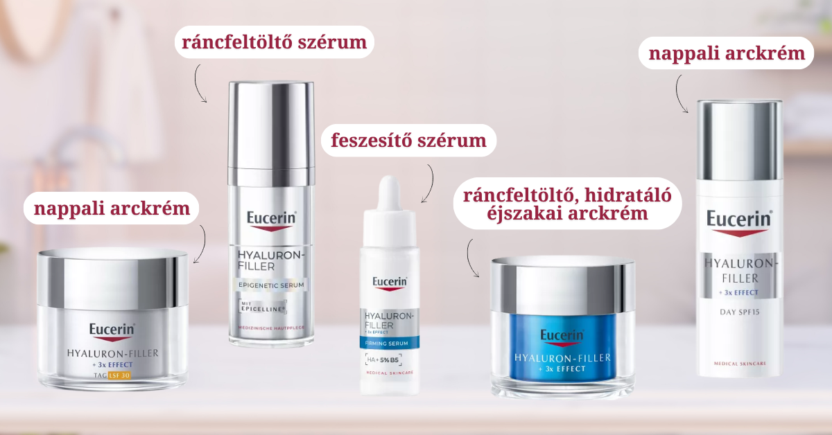 A tudatos anti-aging rutin középpontjában a megfelelő kozmetikumok állnak. A Pirulafutár webpatikájában megvásárolható Eucerin Hyaluron-Filler termékcsalád hialuronsavval tölti fel a bőrt, így segít csökkenteni a finom és a mélyebb ráncokat is. Az Eucerin Hyaluron-Filler + Elasticity termékei pedig kifejezetten az érett bőr feszességét célozzák, és támogatják a bőr természetes regenerációját. Külön figyelmet érdemel az Epigenetic ráncfeltöltő szérum, amely innovatív formulájával serkenti a bőr saját kollagéntermelését, miközben gyorsan beszívódó textúrája miatt ideális a reggeli és esti rutinba is.