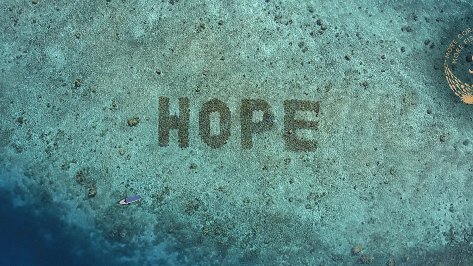 A H-O-P-E betűszó volt a szimbolikus kezdete annak a 10 éves programnak, amelynek célja a veszélyeztetett korallok megmentése, Indonézia Salisi Besar régióján túl. A helyreállításhoz egy hatékony, innovatív technológiát, az úgynevezett "zátony helyreállítási rendszert" használják - egy 90 cm széles, csillag alakú acélszerkezetet, amelyet homokkal és gyantával borítottak, hogy megvédjék a korróziótól. Ezeket az acélszerkezeteket képzett búvárok a víz alatt összekötik, majd lehorgonyozzák, hogy túléljék a zord időjárási körülményeket. Ezzel egy olyan erős hálózat jön létre, amely a tengerfeneket beborítva mintegy 12-13 000 korall fejlődéséhez biztosít stabil alapot.