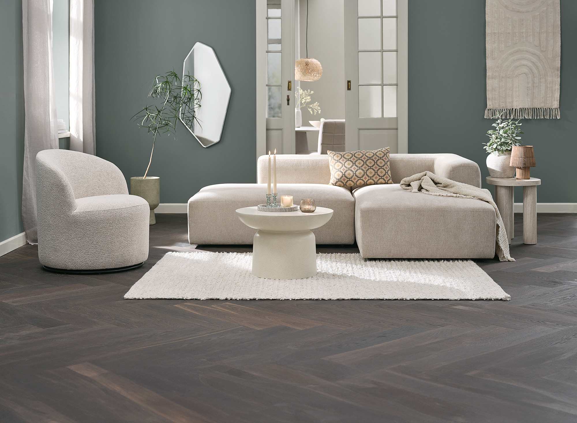 Nem kell túlzsúfolni a teret. Egy-egy egyszerű, harmonikus darab segít tisztán tartani a lakás vizuális világát, és megteremti a békés, nyugodt érzést. Egy világos, letisztult vonalvezetésű kanapé például nemcsak kényelmet ad, hanem a nappali központi elemévé válva rendezettséget is sugall.