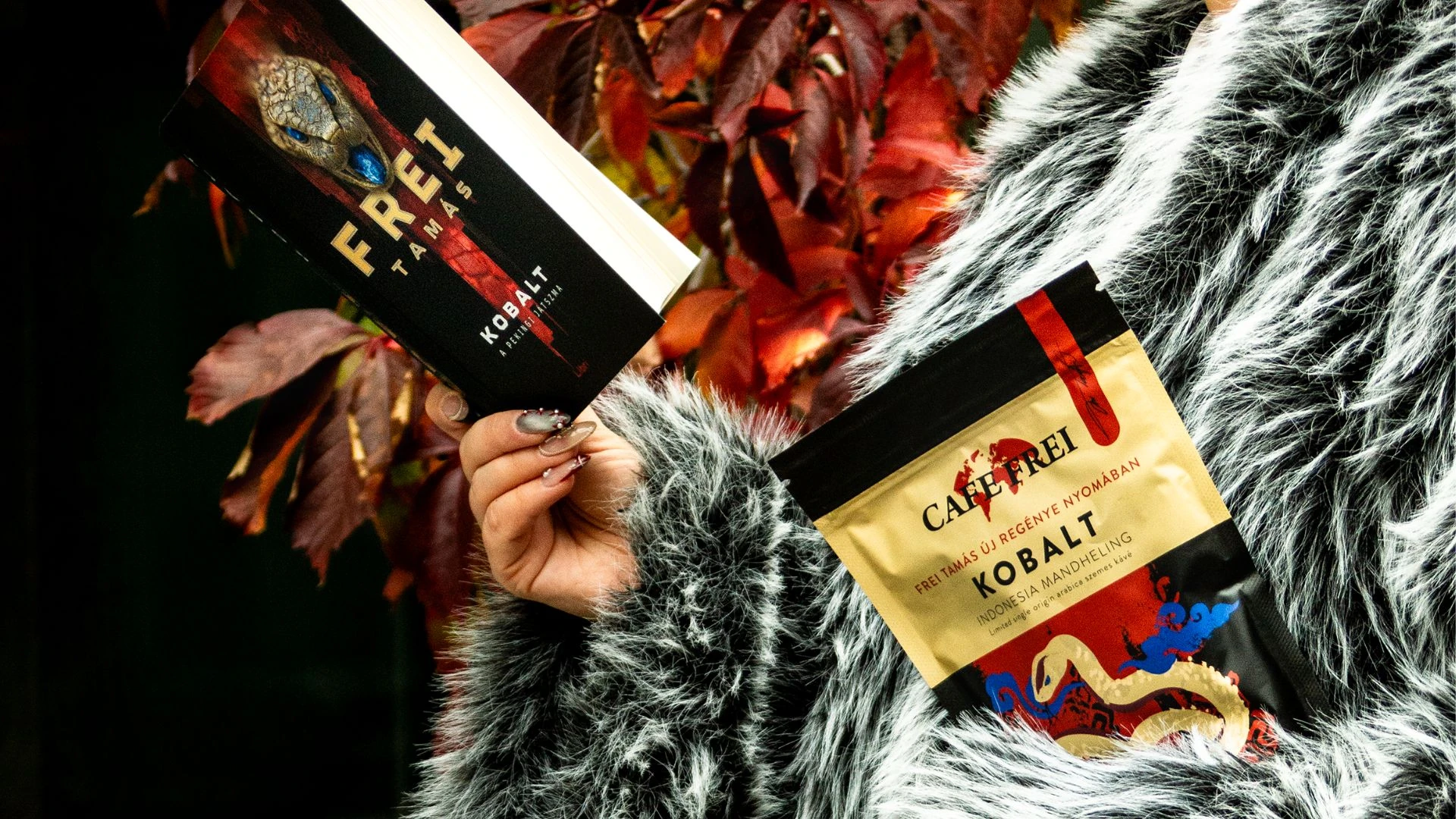 Aki ismeri márkát, tudhatja, hogy a Cafe Frei számára a kreativitás és a szórakoztatás elsődleges szempont, amely minden részletben érvényesül az ízektől az enteriőrig. Frei Tamás új regénye kapcsán nemcsak kávéházi italokat alkottak, hanem egy olyan csúcsminőségű szemes kávét, amely Indonéziából érkezett a pörkölőbe, és a könyvborítóra emlékeztető csomagolást kapott. A komplex ízvilágú KOBALT kávé a Cafe Frei kiemelt kávézóiban vásárolható meg csomagban a könyvvel együtt, és akár tökéletes karácsonyi ajándék is lehet.