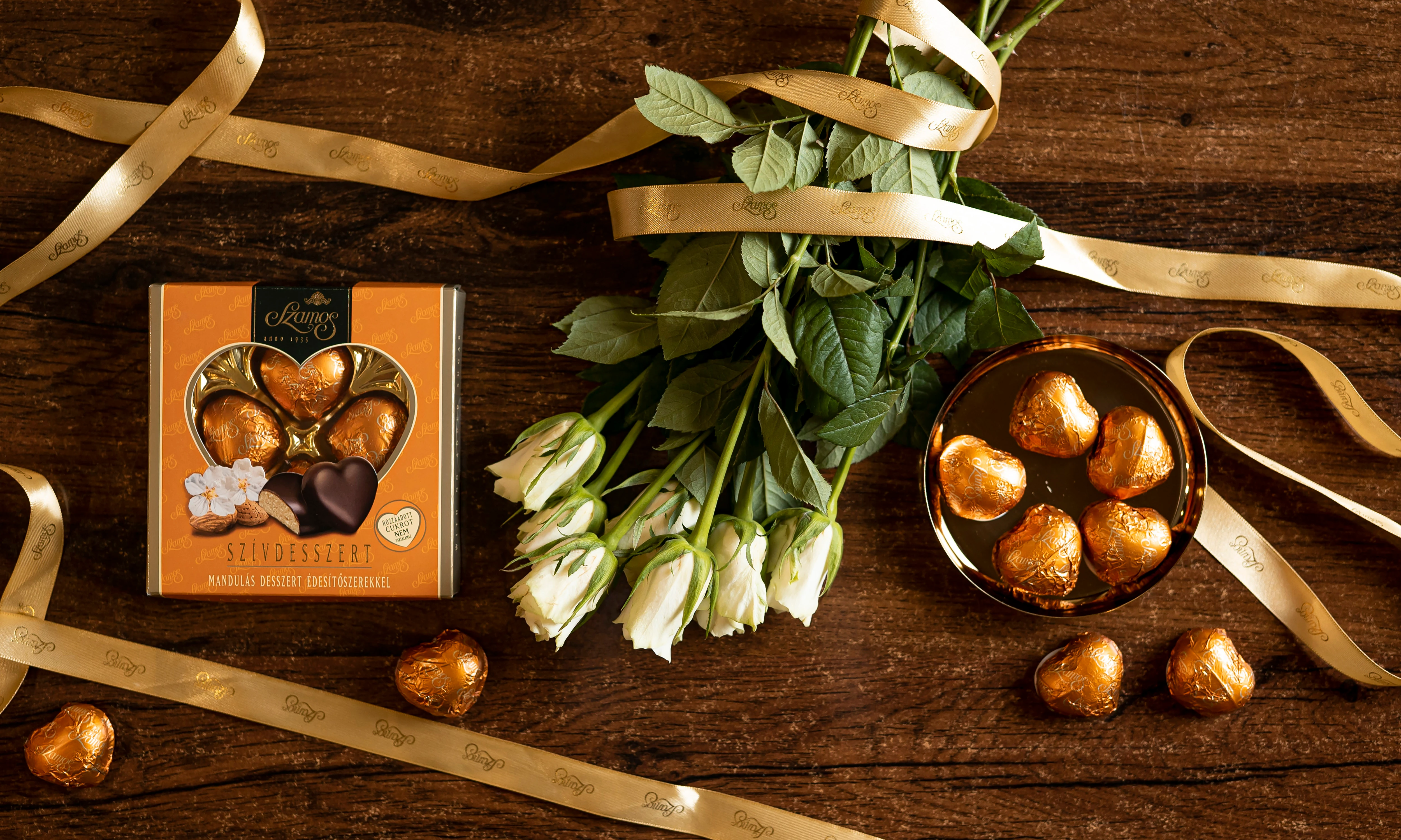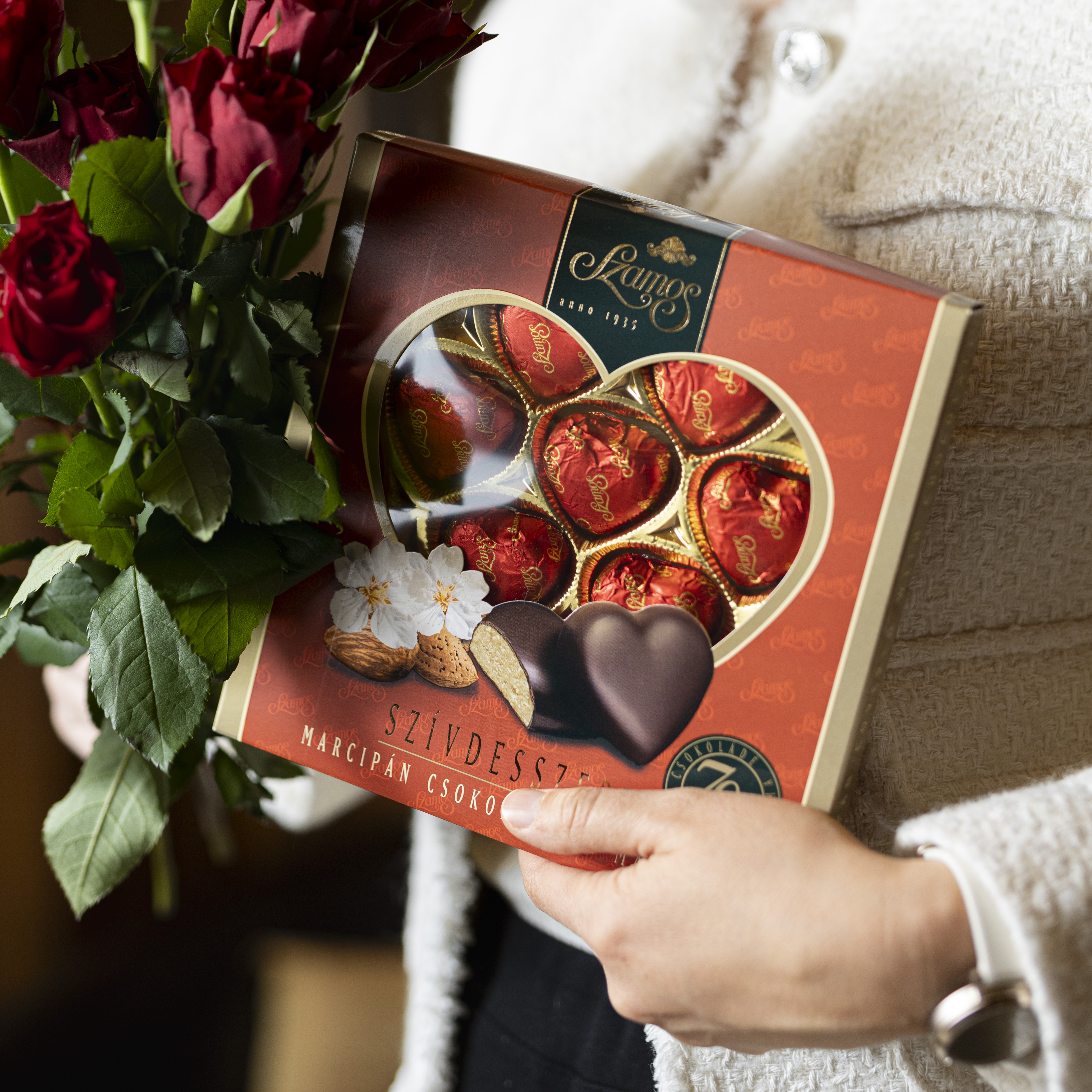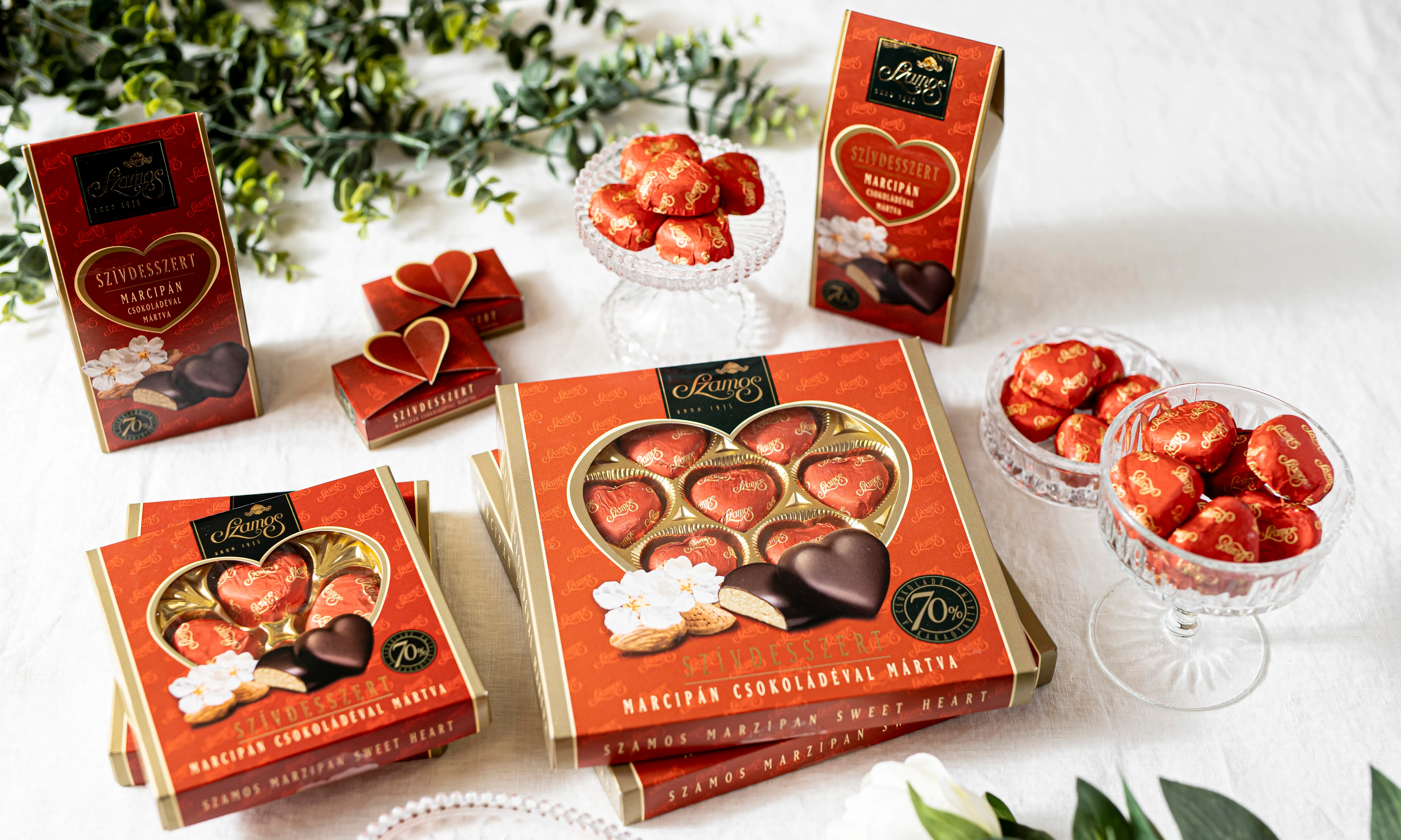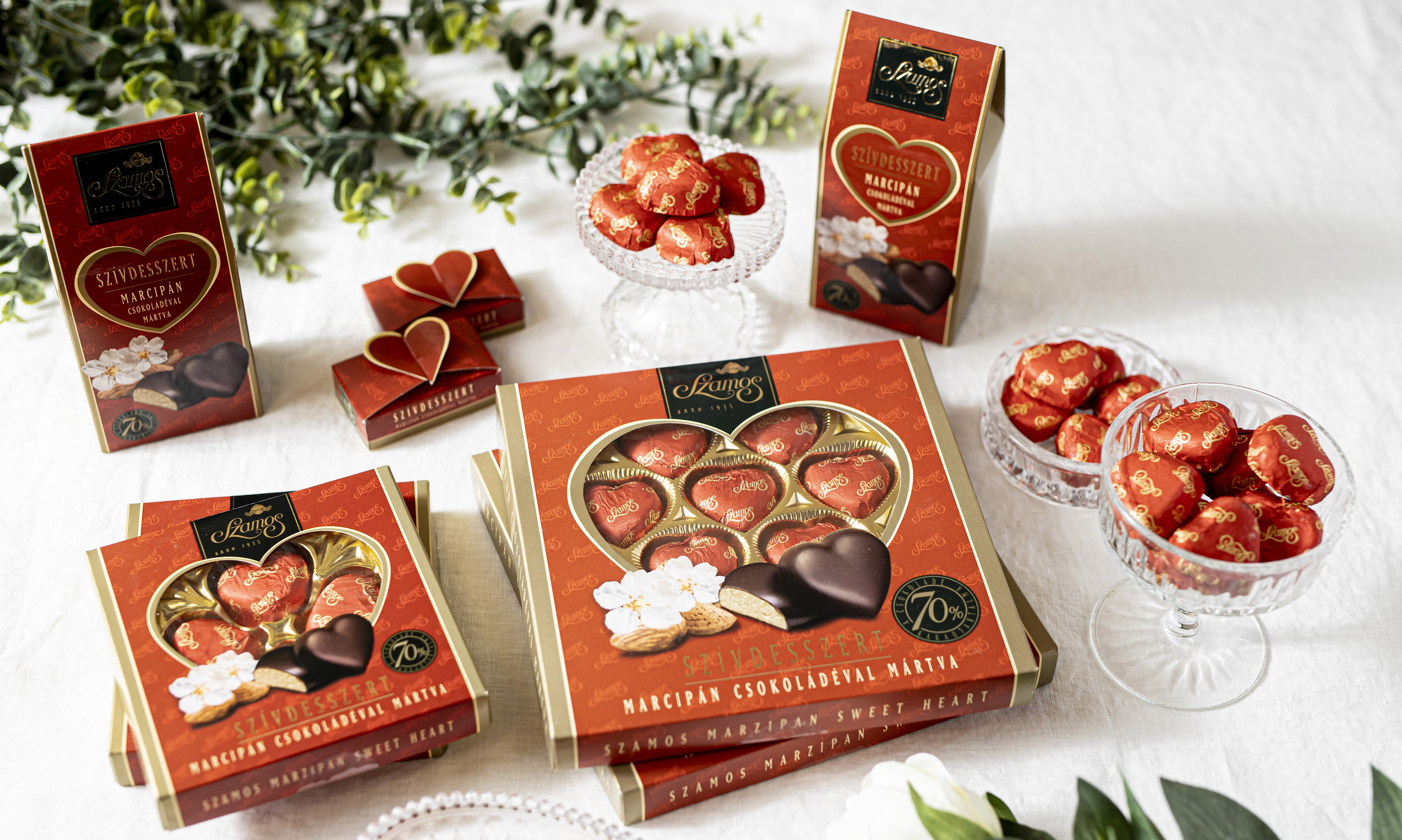 Ha biztosra akarsz menni lepd meg Szamos szívdesszerttel! A magas mandulatartalmú, 70% kakaó szárazanyag tartalmú csokoládéval mártott szívecske sokak kedvence, és elérhető hozzáadott cukor nélküli változatban is.