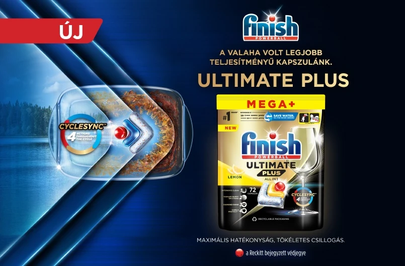 Jó tudni azt is, hogy a mosogatás hatékonysága tovább fokozható, ha a legújabb fejlesztésű mosogatókapszulákat használjuk. Ezek közé tartozik például a CYCLESYNC™ technológián alapuló Finish Ultimate Plus, amely fokozatosan, mindig a megfelelő időben szabadítja fel az összetevőket, míg korábban ezek egyszerre olvadtak ki a kapszulákból. Ráadásul a ráégett ételmaradékkal is megbirkózik előöblítés nélkül, így a csökkentett vegyi anyag tartalmú tabletta garantálja a mosogatás végén a makulátlanul tiszta és csillogó edényeket.