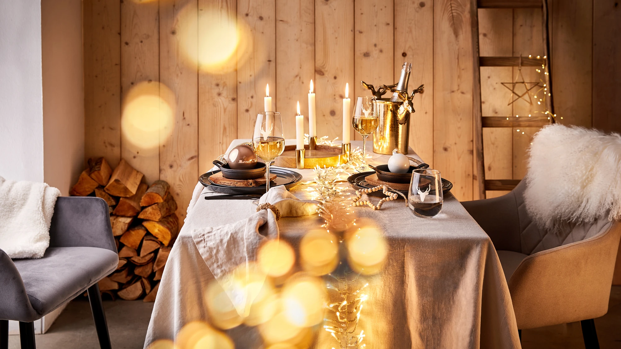 Tipp: Ha a fényekre kerül a sor, válassz meleg, visszafogott fényű égősorokat vagy csak helyezz néhány mécses- és gyertyatartót az asztalra. A pislákoló gyertyafénynél nincs is hangulatosabb!