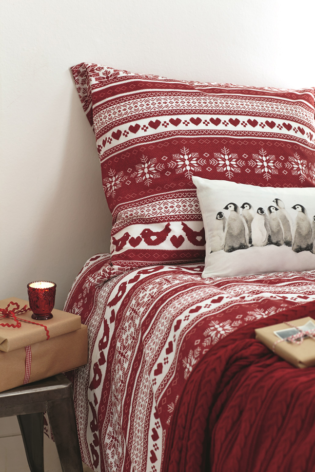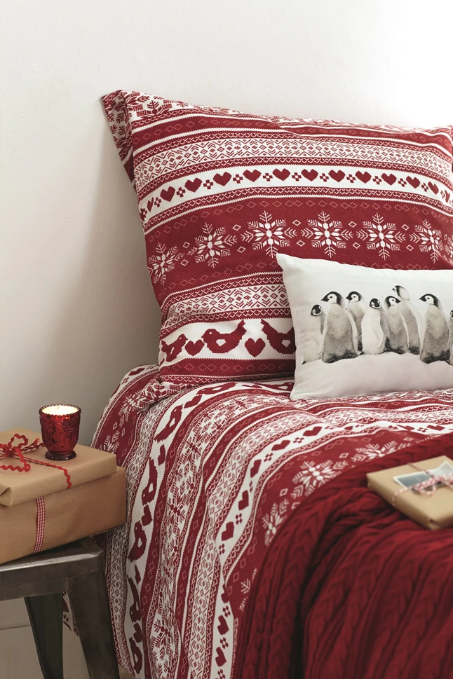 Hálószobájádba varázsolj karácsonyi hangulatot hópelyhekkel, kismadarakkal és szívekkel díszített klasszikus skandináv stílusú ágyneművel.