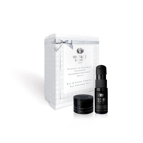 A Vintage Beauty nappali és éjszakai feszesítő szemkörnyékápoló-szettje rendkívül effektív anti-aging összetevőinek köszönhetően képes a szem körüli bőrfelület látható ránctalanítására, amelynek hatása 6 percen belül jól láthatóvá válik. A szett rendszeres napi használat mellett is 2 hónapra elegendő mennyiséget tartalmaz.