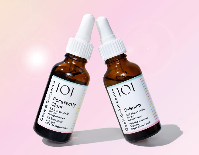 A legjobb egy 2 százalékos BHA-t és egy 10 százalék körüli niacinamide szérumot egymás után (előbb a BHA utána a niacinamide) naponta használni, például a Geek & Gorgeous 101 Porefectly Clear és B-Bomb párosát, amelyek nemcsak elképesztően baráti áron kaphatóak, de jó hír, hogy már a kiemelt dm üzletekben is elérhetőek!