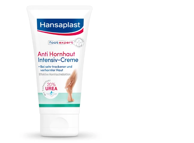 A Hansaplast INTENSIVE HELP Bőrkeményedés elleni krém 20 százalékos urea tartalmával és Aquaporin technológiájának köszönhetően hatékonyan száll szembe a bőrkeményedéssel, és mélyen hidratálja a bőrt a lábfejeken, a sarokrészen és a talpakon.