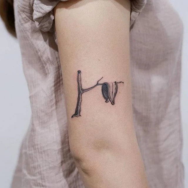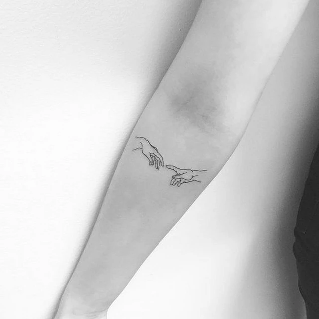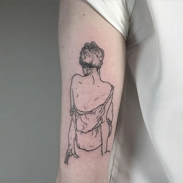 Schiele-rajongóknak első látásra szerelem lehet ez a lecsupaszított, csak kontúrvonalakból álló tetoválás.