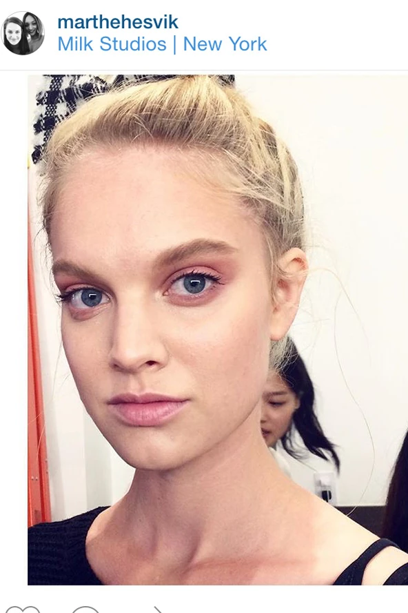 Dominique, a Maybelline sminkmestere matt hatású alapozót használt, majd korrektorral tüntette el az apróbb hibákat a modellek bőréről. Ezután kevés highlightert vitt a szemek alá és a T-vonalra is, ezzel kiemelve az arc legszebb vonásait.