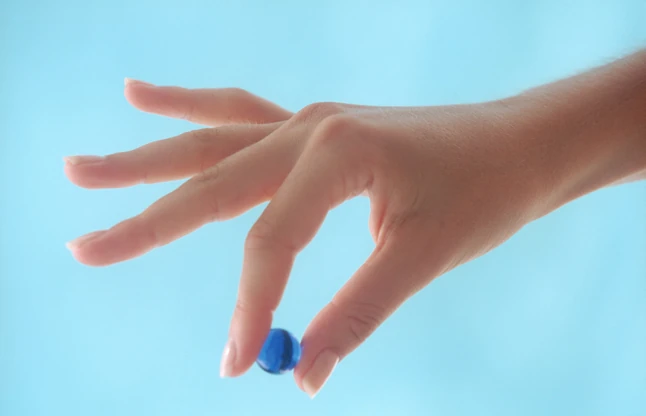 4. A legfontosabb a hüvelykujj. Görgess egy golyót a mutatóujj és hüvelykujj között, majd a középsőujj és hüvelykujj, gyűrűsujj és hüvelykujj, kisujj és hüvelykujj között, azután ismét visszafelé. További lehetőségek: Próbálj tornázni mindkét kezeddel egyszerre, és a golyókat görgesd ellenkező irányba a jobb és bal kezedben.