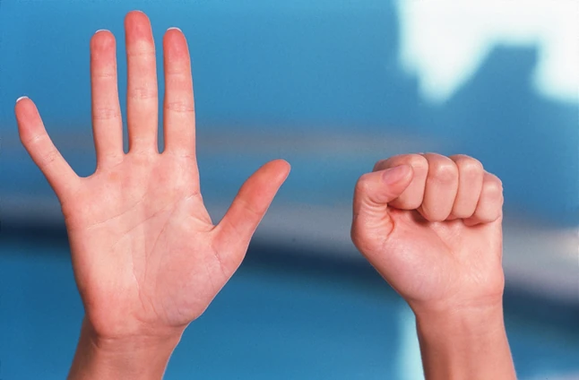 6. Ujjhajlítás. Feszítsd ki minden ujjad és utána egymás után hajlítsd le a tenyered felé, de ne hajlítsd be a felső pereceket. Kezdj a hüvelykujjal, és haladj a kisujj felé, majd visszafelé. Ismételd meg tízszer a jobb kézen, tízszer a bal kézen és tízszer mindkét kézzel egyszerre.