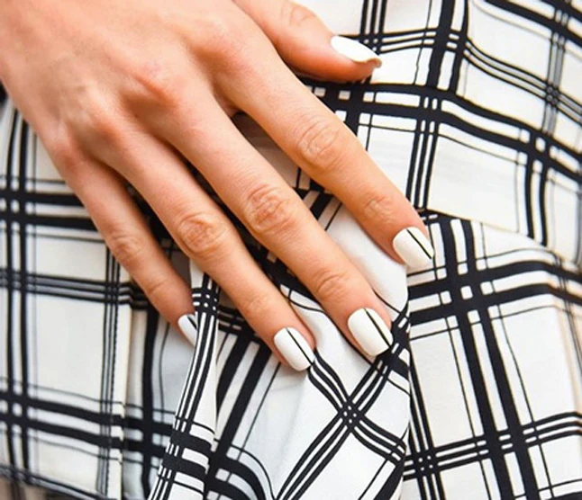 Ne feledkezz el a körmeidről sem, a fehér alapokon vékony fekete csík elegáns és modern!