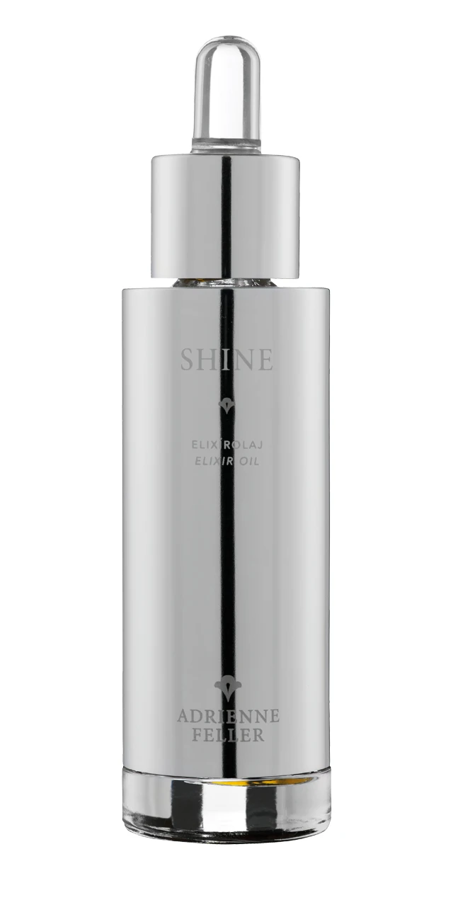 A Shine elixírolaj kényeztető, mégis intenzív hatású növényi kivonatok harmonikus kompozíciója, amelyből már egy csepp is azonnali eredményt hoz. Válogatott összetevői közül kiemelkedik a minden gyulladást megszüntető árnika, és a sejtregeneráló hatású korzikai Immortell. A luxust fokozza a rózsa kivonat, ami mellett aranyló mandulaolaj, smaragdszínű szőlőolaj és fiatalító hatású tengeri alga kivonat is került az elixírbe. Mindezek olyan művészi elegyet alkotnak, hogy az elixírolaj cseppek mélyen behatolnak a bőrbe és pillanatok alatt életre keltik azt.
