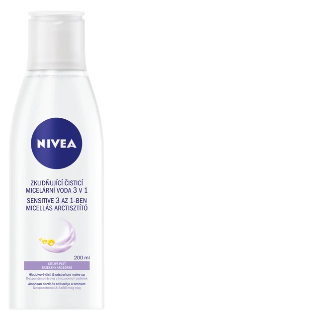 3. A szőlőmagolajat tartalmazó NIVEA Sensitive 3 az 1-ben micellás arclemosó alaposan tisztít, eltávolítja a sminket és hidratál is egy lépésben. 10-ből 9 nő ajánlaná barátnőjének. Te kipróbáltad már? Mi normál és vegyes bőrtípusra ajánljuk! Ára: 1699Ft/200ml