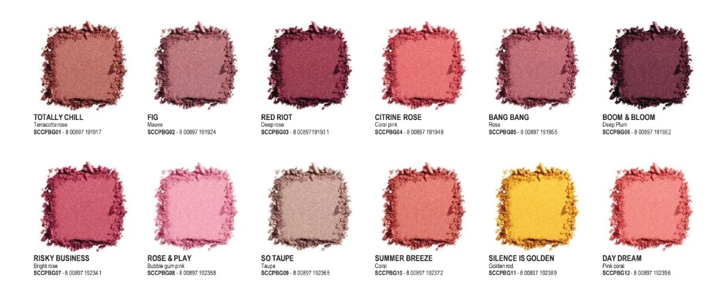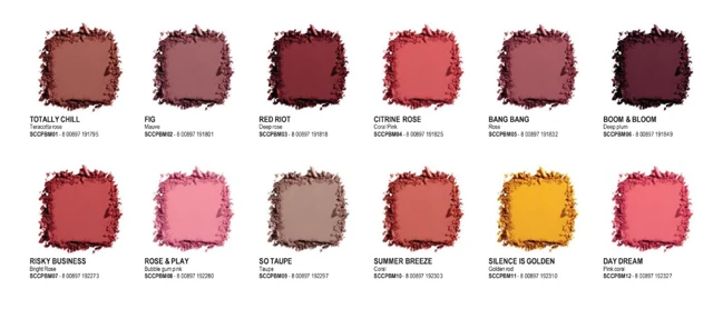 A hagyományos színekben (rózsaszín, korall, és pirosas) és művészet inspirálta árnyalatokban (lila, sárga) mind a 12 selymes púdert könnyű eldolgozni.