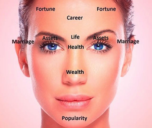 A kínaiak úgy tartják, hogy a homlok két oldalsó része a szerencsénket szimbolizálja. Így ha megfelelően ápoljuk, biztosan sok jó dolog fog érni minket az életünkben. A homlok középső része a karrierünket jelképezi, így ha valami nem stimmel a munkánkkal, előfordulhat egy két bőrhiba, vagy pattanás. A szemöldökeink közti rész az életet szimbolizálja, a két szem közötti rész, pedig az egészséget. Te elégedett vagy vele? Ha teszel a bőrödért, már magadért is rengeteget teszel, így kölcsönhatásba lép és biztosan jobban fogod magad érezni! A halántékunk pedig a házasság harmóniáját mutatja. Az orr a vagyont szimbolizálja. Nem hiába tartották úgy a közhiedelemben a régi időkben, hogy a nemeseknek minél nagyobb volt az orra, annál nagyobb volt a vagyona. Az áll pedig a hírnevet szimbolizálja.