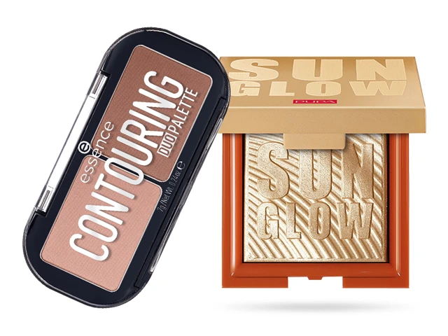2. Jöhet egy kis arcformázás! Kontúrozd az arcod az ESSENCE duójában található szürkésbarna árnyalattal, majd tedd ragyogóvá az arccsontod a PUPA Sunglow, arany fényű highlighter púderével! Ne aggódj, ha egy kicsit megszalad a kezed, most nem kell visszafogd magad!