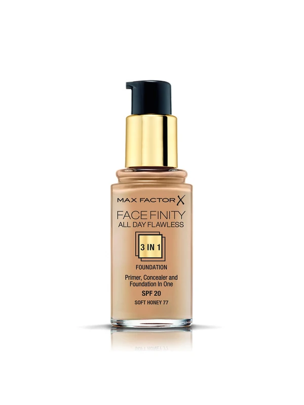 Elsőként vidd fel a Max Factor 3 az 1-ben alapozóját arcbőrödre az ujjaid vagy egy alapozóecset segítségével. Ez a termék alapozó, fényvédő és korrektor is egyben.