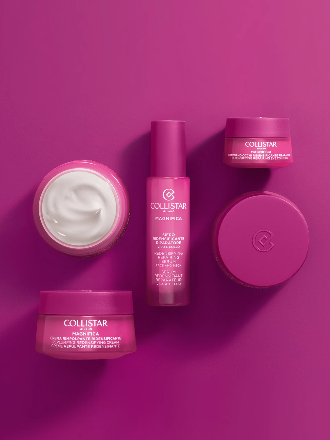A COLLISTAR leginkább az ikonikus, utánozhatatlan és forradalmi bőrápoló termékeiről ismert, immár 1983 óta. Megújult Magnifica termékcsaládjuk négy szuperhatékony feltöltő és ránctalanító terméket tartalmaz, melyek az eddiginél még hatékonyabb formulával veszik fel a harcot az öregedés jelei ellen.