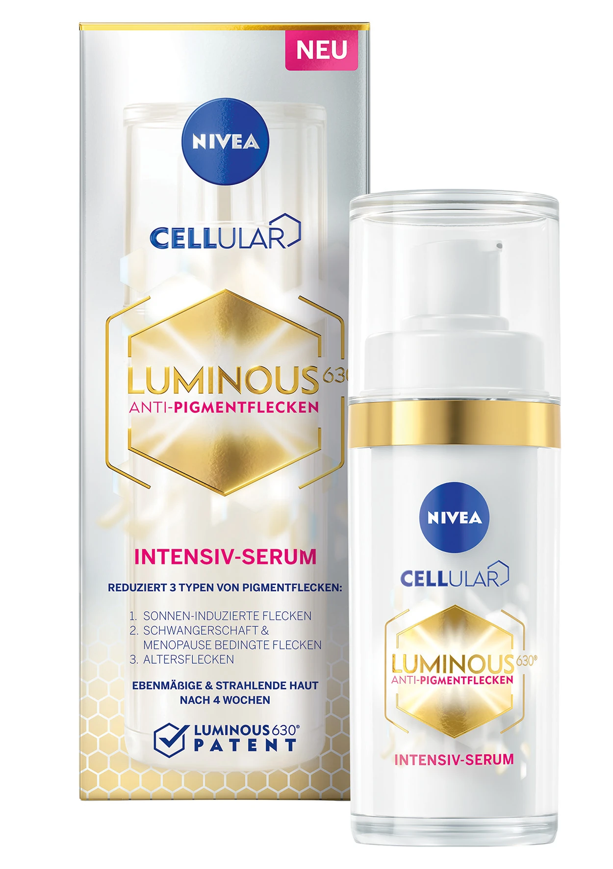 Az új Cellular Luminous630® termékcsalád tízéves kutatás eredménye. A NIVEA laboratóriumaiban – először sejttenyészeteken, majd 1000, minden bőrtípust képviselő önkénteseken – végzett szigorú tesztelés után a szakértők megtalálták azt a szabadalmaztatott összetevőt, amely igazán hatékony a sötét foltok biztonságos kezelésében és megelőzésében.
