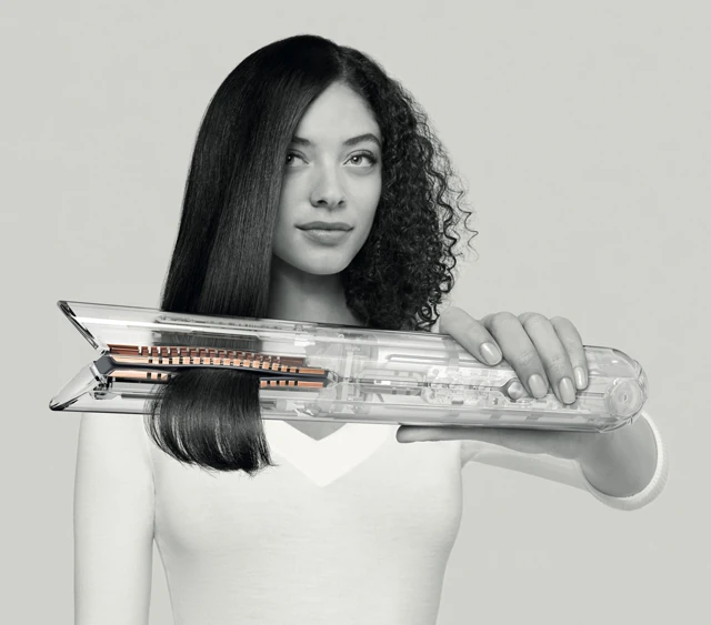 A Dyson CorraleTM vezeték nélküli hajvasaló szabadalmaztatott Dyson hajlékony formázólapokat alkalmaz, amelyek a tincsekhez igazodva biztosítanak kiemelkedő hajformázást feleakkora mértékű hő miatti károsodással. Bárhol és bármikor lehetővé teszi a hajformázást, a hagyományos készülékekhez képest gyorsabban.