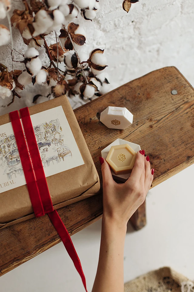 "A márka formavilágához tervezett szappantartó magas tűzön égetett fehér porcelánból készül, melyet transzparens mázzal fedtünk be a könnyű tisztíthatóság miatt. Elülső részét fényarany matricával égettük fel, amelyen elegánsan és letisztult módon köszön vissza a márka megjelölése – egységet létrehozva a nyers és natúr anyaghasználat és az elegancia között" – mondja az alkotó.