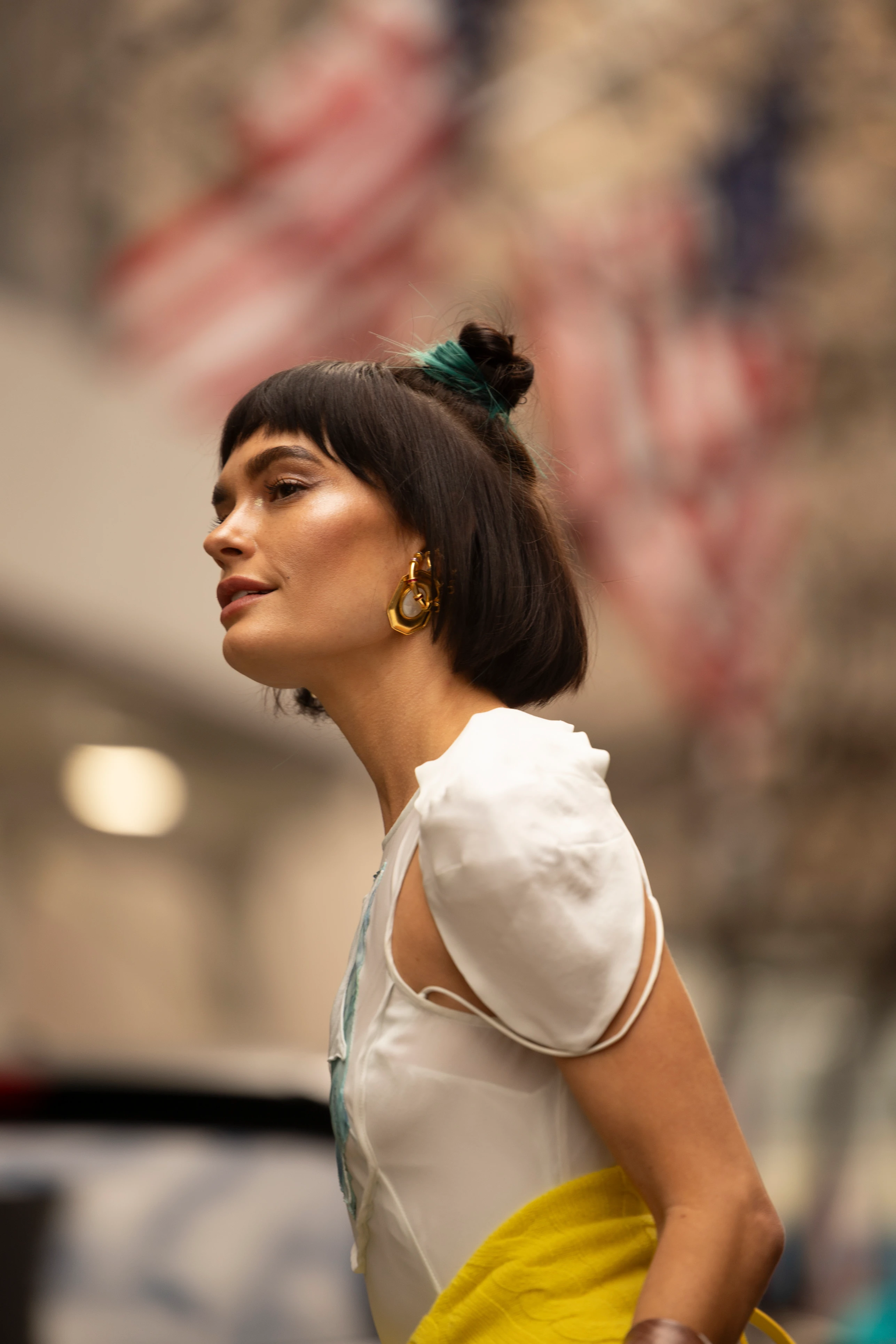 A színésznő kifinomult stílusa öltözködésében is megmutatkozik: az egyszerű, mégis elegáns ruhához tökéletesen passzoló, különleges magassarkút választott és színben passzoló ékszereket párosított.